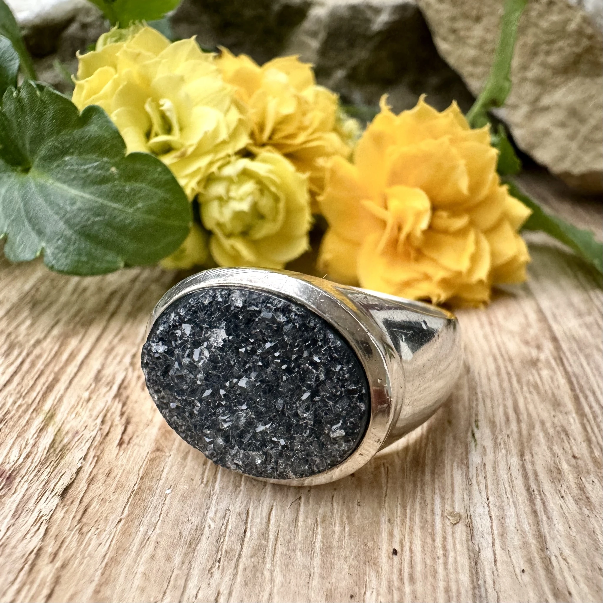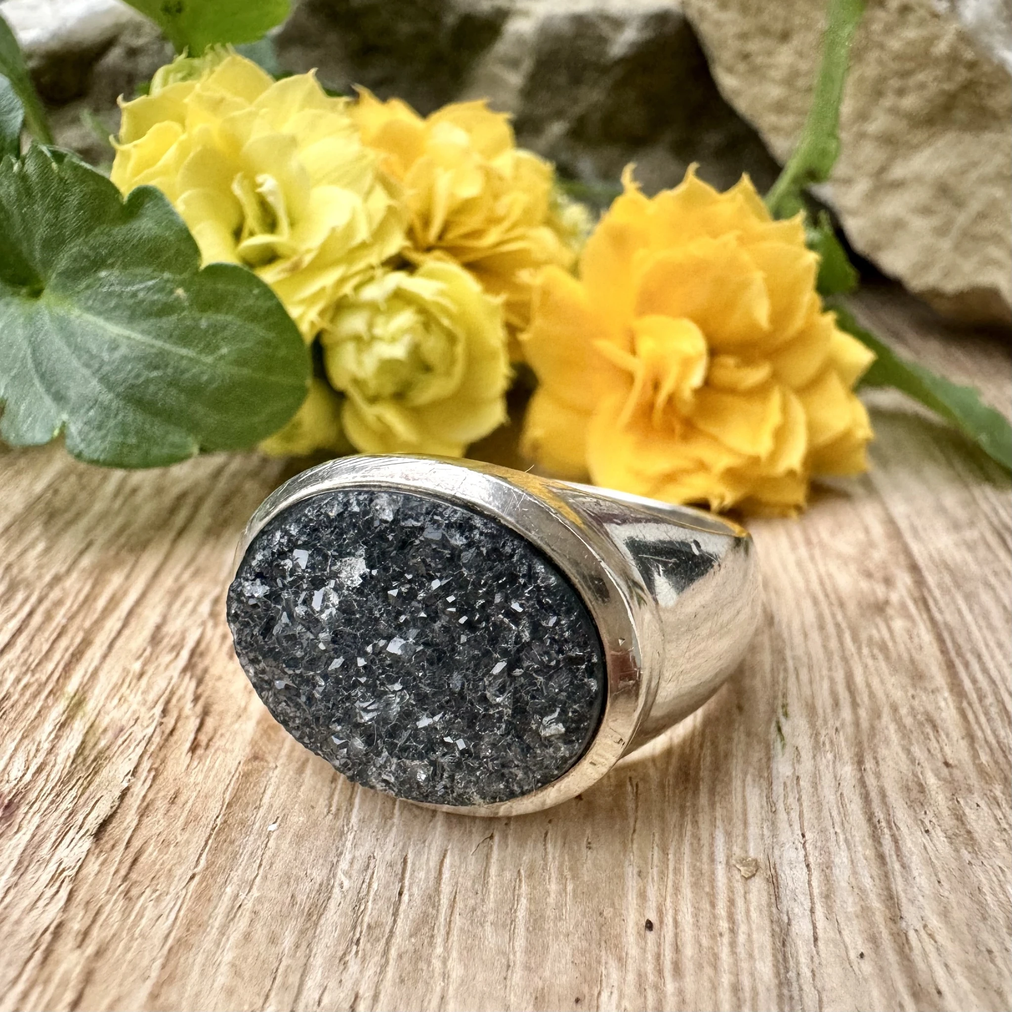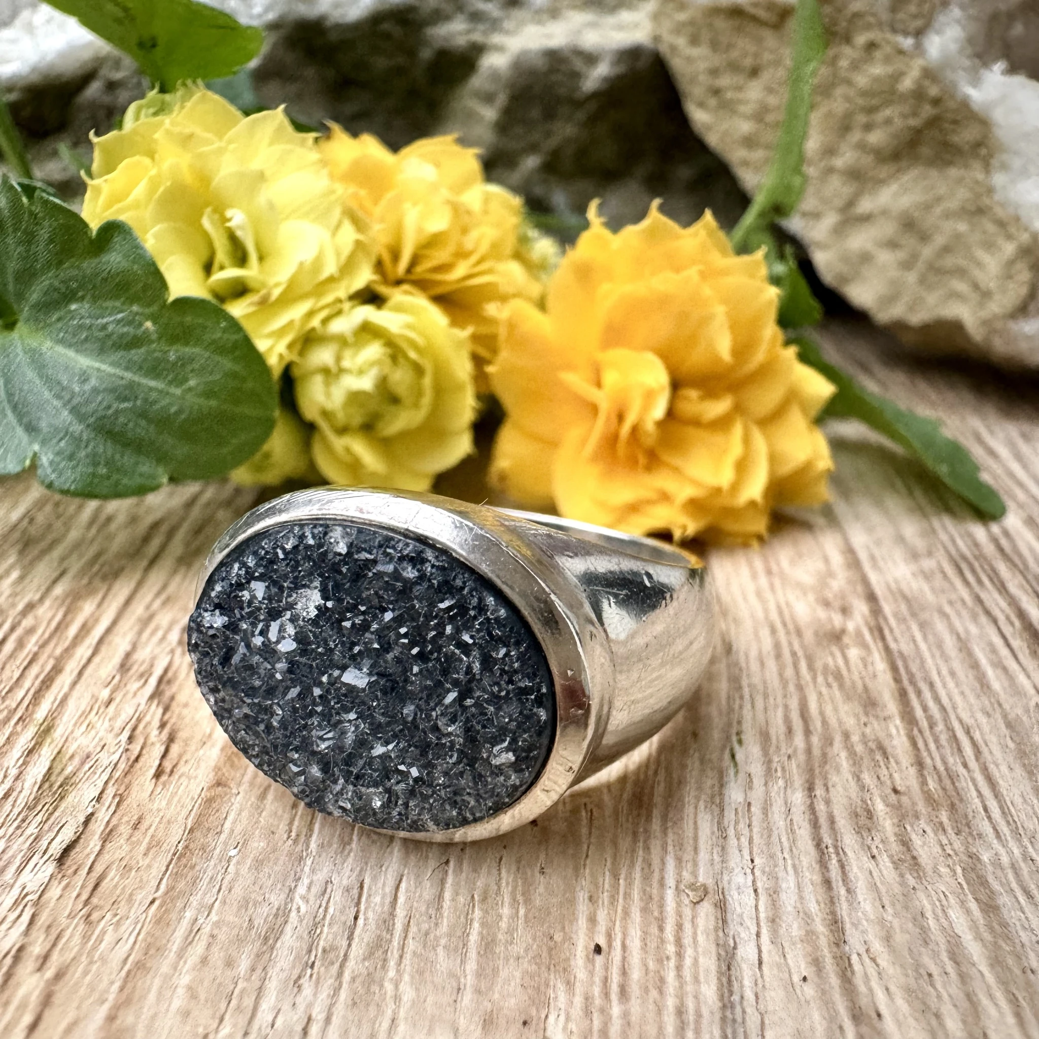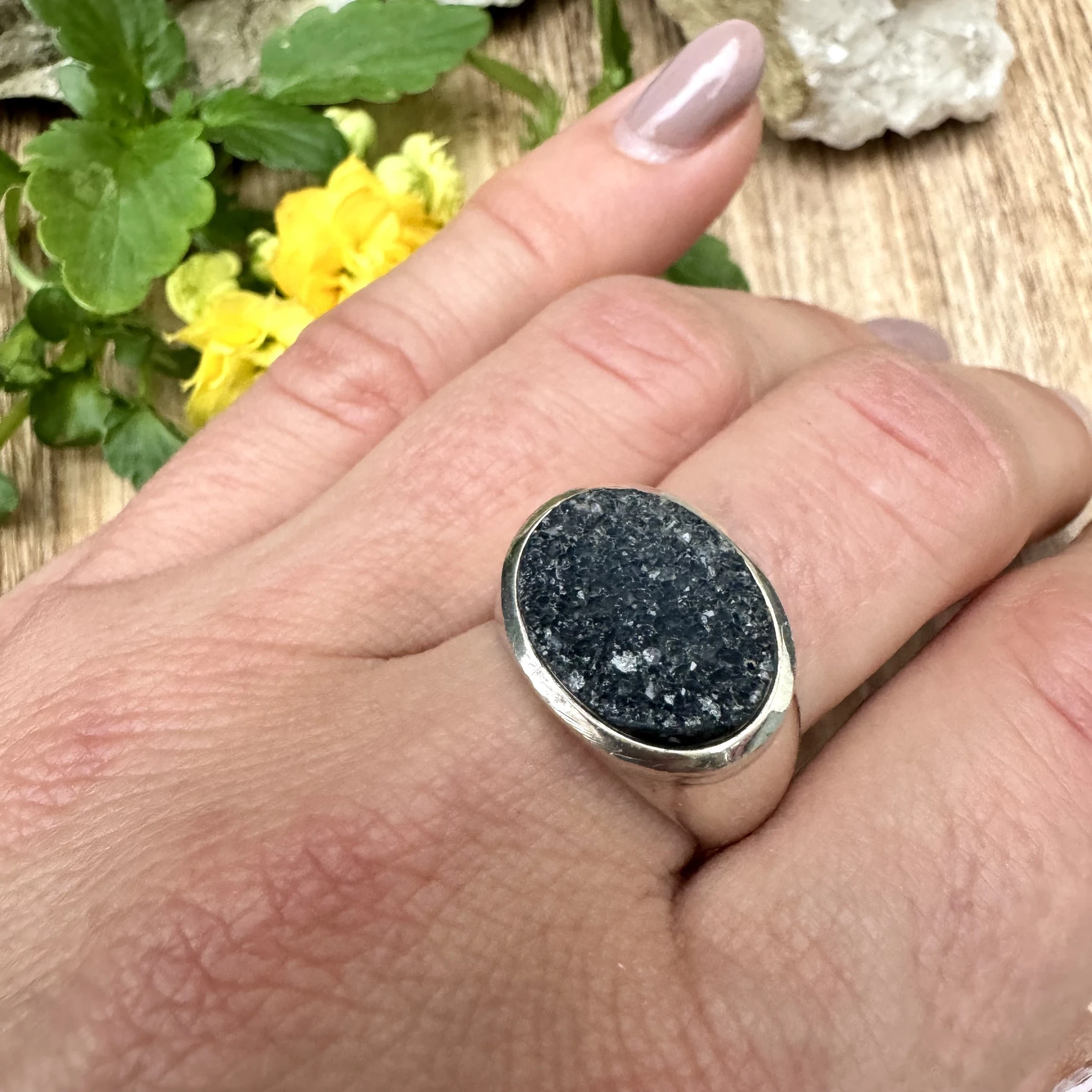 Hõbesõrmus ahhaat geoodiga.