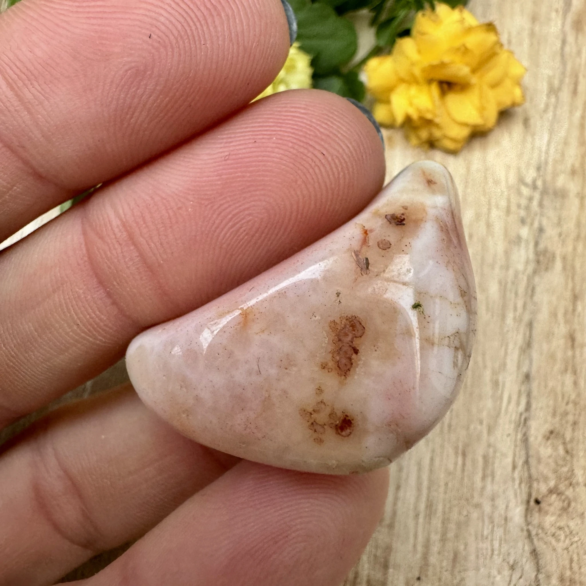 Aprikoos ahhaat tasakaalustab mees- ja naisenergiaid ning aitab tuua meelerahu. Ta leevendab stressi ning aitab leppida olukordadega, mis ei allu meie kontrollile. Aprikoos ahhaat on jõu kivi. Iidsetel aegadel kasutati seda turvise rinnatükkides ning see pidi muutma sõdalase lahingus võidukaks.