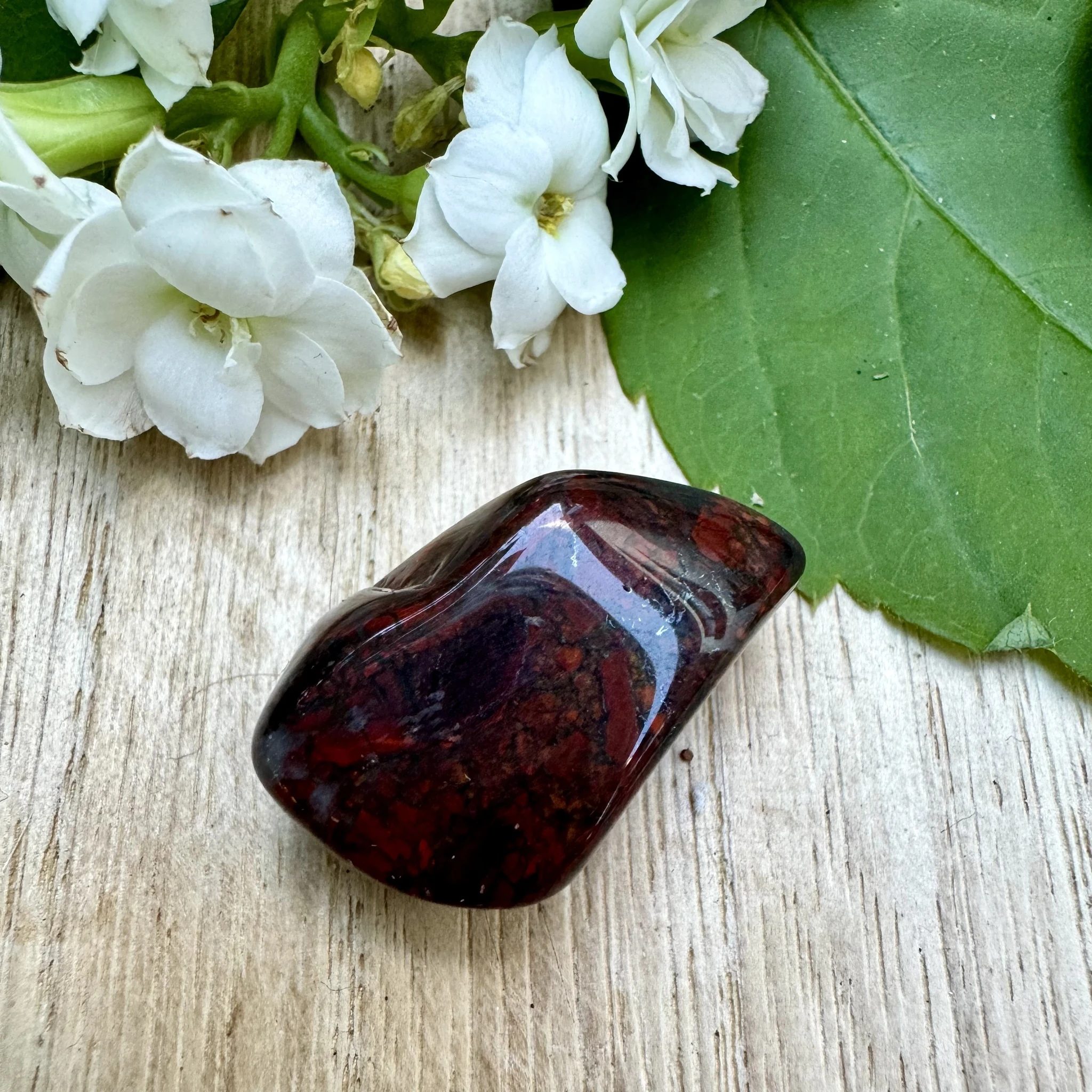 Bretšastunud jaspis on tugevuse ja vitaalsuse kristall. Ta on aitab mõtetes selgust luua ning samuti võimaldab vaadata erinevatele kogemustele ja elusündmustele (või miks mitte ka elule tervikuna) hoopis teise nurga alt. Bretšastunud jaspis stimuleerib juur- ja seksuaaltšakrat, eemaldades efektiivselt blokeeringud ning taastades energiavoolu. Lisaks sellele puhastab ja stabiliseerib ta auravälja ning eemaldab sealt kogu negatiivsuse suunates selle tagasi oma algallikasse. Seda kristalli on hea kasutada seksuaalsusega seotud valehäbist vabanemisel. Muuhulgas võib ta ka leevendada seksuaalset agressiivsust või hoopiski aidata kaasa seksuaalsele võimekusele. Teisisõnu ei aita bretšastunud jaspis mitte ainult kundalini energiat äratada ning sellega ühendust saada, vaid ta aitab seda ka stabiliseerida. Bretšastunud jaspist on hea kasutada murekivina. Ta on erakordselt võimekas rahustaja ja tervendaja. See kristall aitab suurepäraselt toksiine kehast väljutada ning seeläbi soosib ta nii tervena püsimist, kui ka aitab paraneda rasketest haigustest. Lisaks sellele aitab bretšastunud jaspis paremini unenägusid mäletada. Bretšastunud jaspis on ka toetavaks ja maandavaks kristalliks neile, kellel käib organiseerimine ja planeerimine üle jõu. Lisaks sellele aitab kristall kaasa loovuse arendamisele ning veelgi enam - ta aitab tekkinud loovusele leida ka konstruktiivse väljundi. Päritolumaa: Aafrika