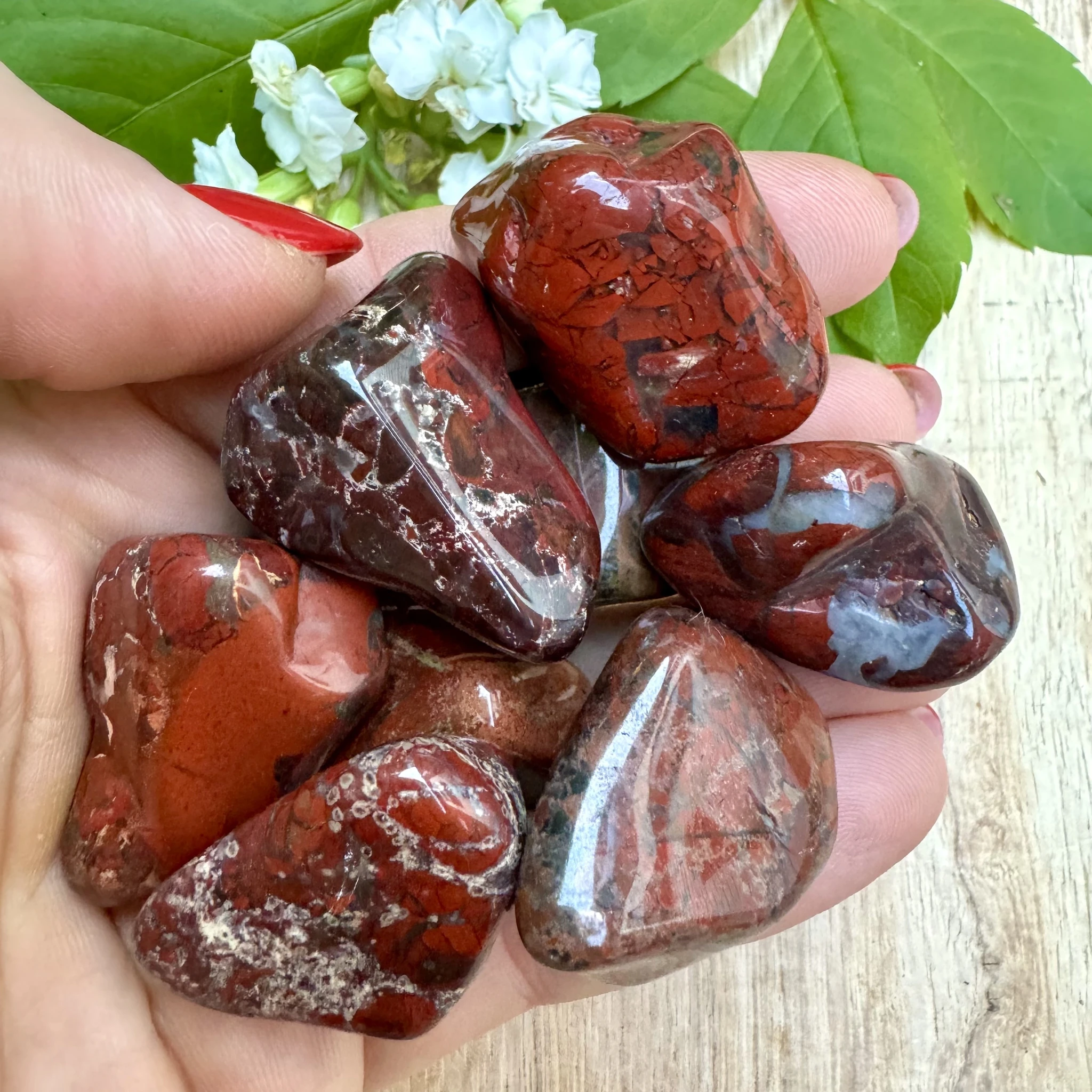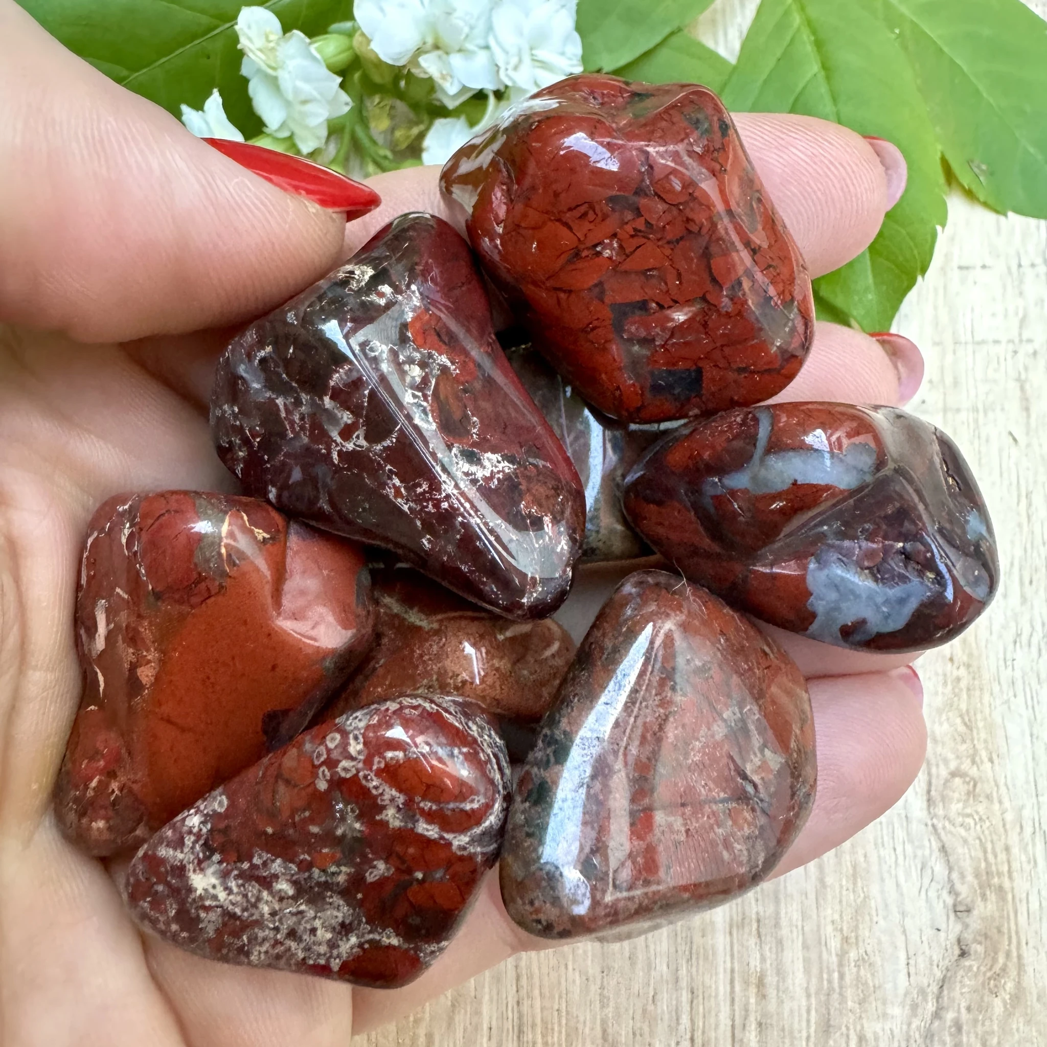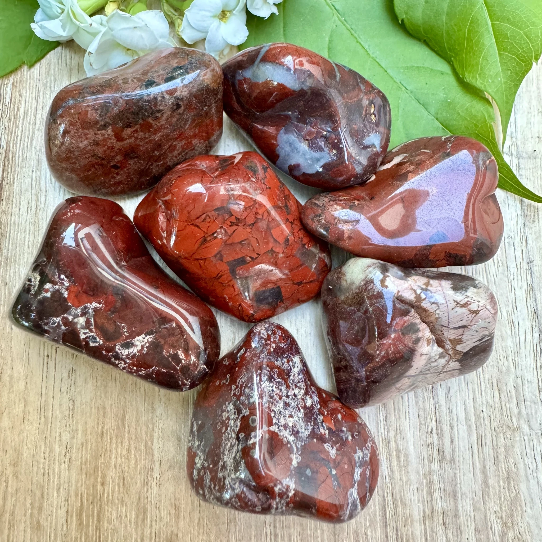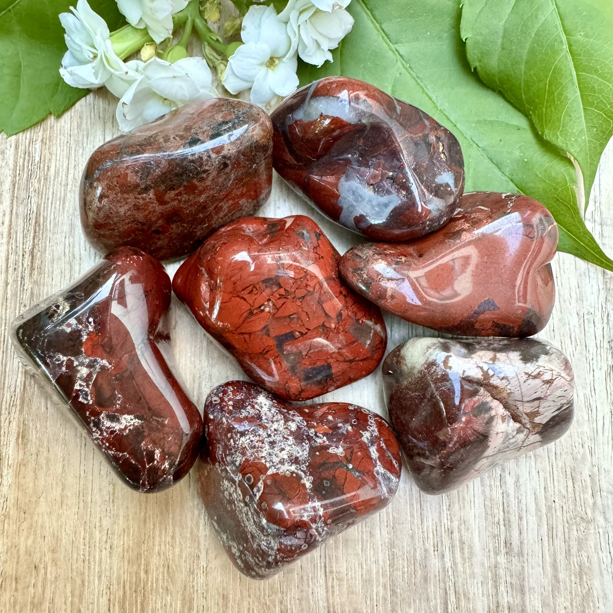 Bretšastunud jaspis on tugevuse ja vitaalsuse kristall. Ta on aitab mõtetes selgust luua ning samuti võimaldab vaadata erinevatele kogemustele ja elusündmustele (või miks mitte ka elule tervikuna) hoopis teise nurga alt. Bretšastunud jaspis stimuleerib juur- ja seksuaaltšakrat, eemaldades efektiivselt blokeeringud ning taastades energiavoolu. Lisaks sellele puhastab ja stabiliseerib ta auravälja ning eemaldab sealt kogu negatiivsuse suunates selle tagasi oma algallikasse. Seda kristalli on hea kasutada seksuaalsusega seotud valehäbist vabanemisel. Muuhulgas võib ta ka leevendada seksuaalset agressiivsust või hoopiski aidata kaasa seksuaalsele võimekusele. Teisisõnu ei aita bretšastunud jaspis mitte ainult kundalini energiat äratada ning sellega ühendust saada, vaid ta aitab seda ka stabiliseerida. Bretšastunud jaspist on hea kasutada murekivina. Ta on erakordselt võimekas rahustaja ja tervendaja. See kristall aitab suurepäraselt toksiine kehast väljutada ning seeläbi soosib ta nii tervena püsimist, kui ka aitab paraneda rasketest haigustest. Lisaks sellele aitab bretšastunud jaspis paremini unenägusid mäletada. Bretšastunud jaspis on ka toetavaks ja maandavaks kristalliks neile, kellel käib organiseerimine ja planeerimine üle jõu. Lisaks sellele aitab kristall kaasa loovuse arendamisele ning veelgi enam - ta aitab tekkinud loovusele leida ka konstruktiivse väljundi. Päritolumaa: Aafrika