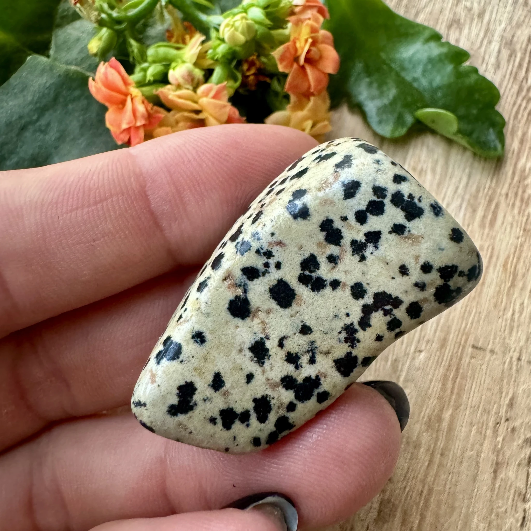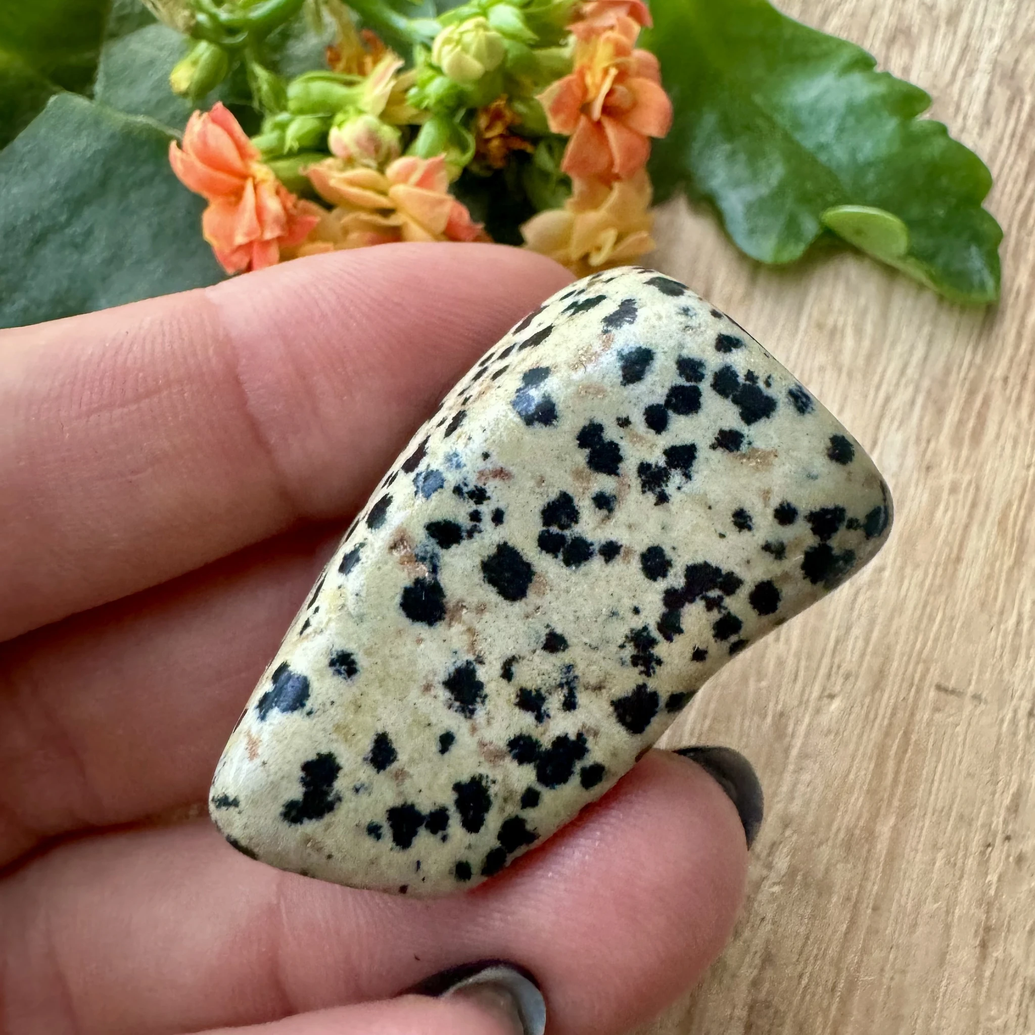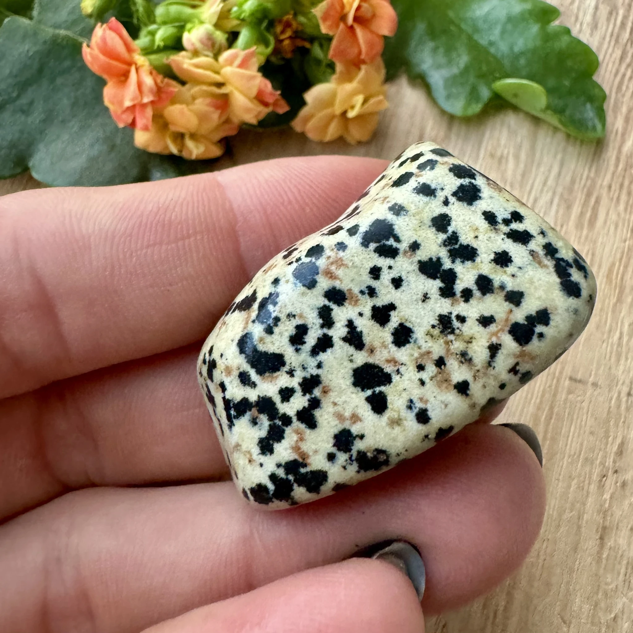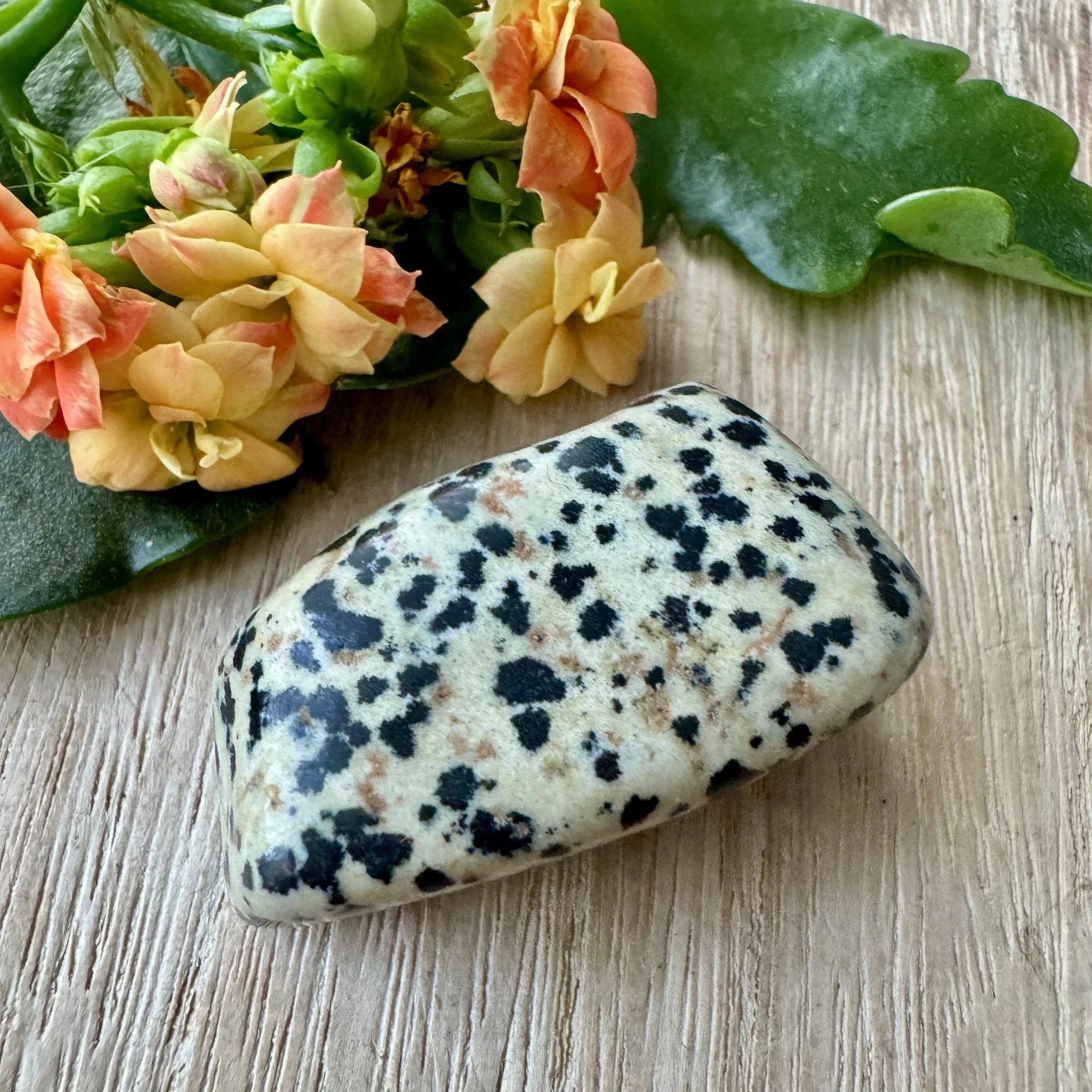Dalmaatsia jaspise energia on lapsemeelne, rõõmus ja mänguline. Just seda kõike toob ka oma kandja ellu. Ta tuletab meelde, et elust peab rõõmu tundma ning lõbutsemine on ka täiskasvanuna vägagi teretulnud. Ta soodustab positiivset ellusuhtumist, head õnne ja lugupidamist elu vastu. Samuti aitab dalmaatsia jaspis vabaneda asjadest ja suhetest, millest Sa oled praeguseks eluetapiks välja kasvanud. Ta soodustab ka oma enda tuuma ja keskme leidmist.