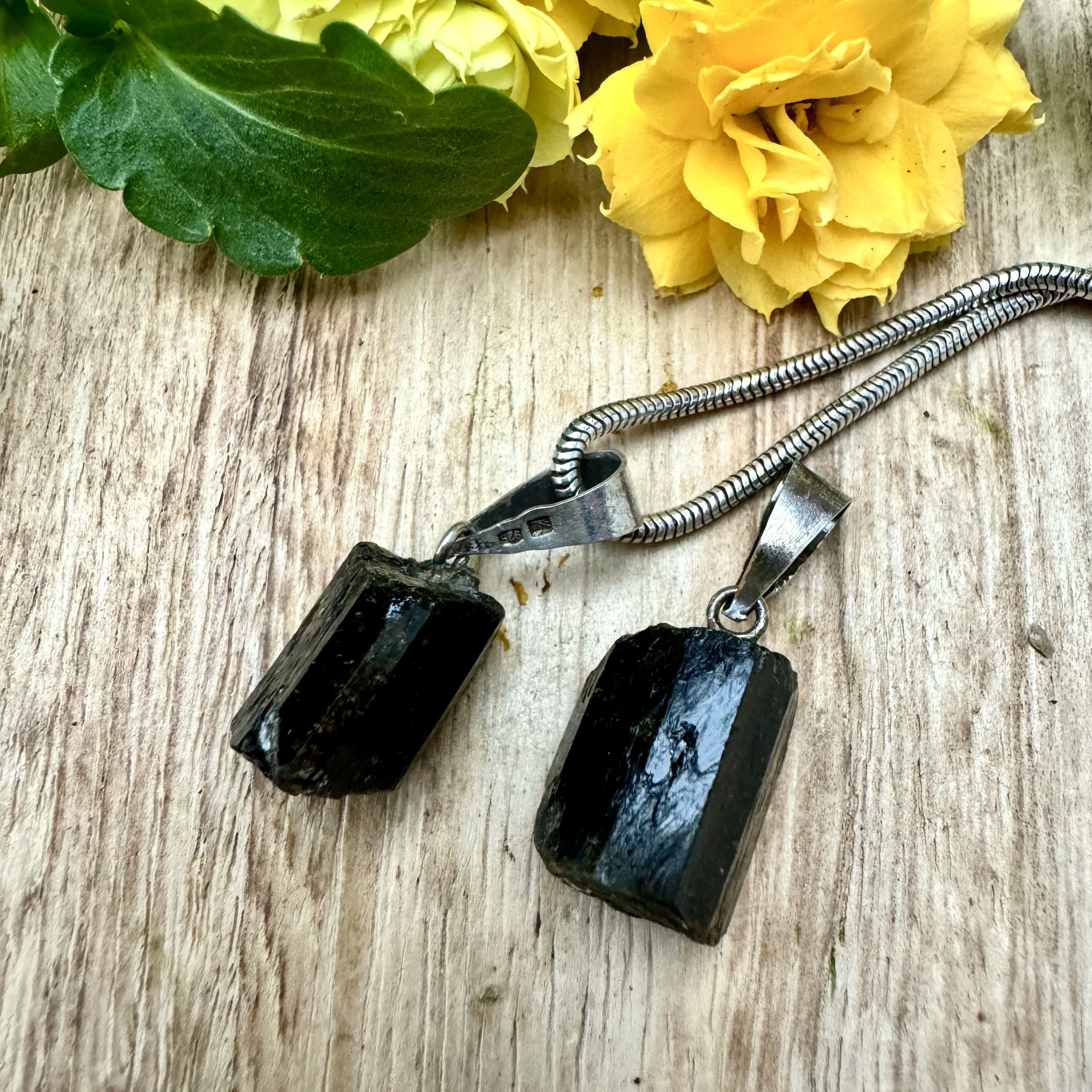 Ehkki pildil tunduvad ripatsid mustana, on nad valguse käes tegelikult tumepruunid.