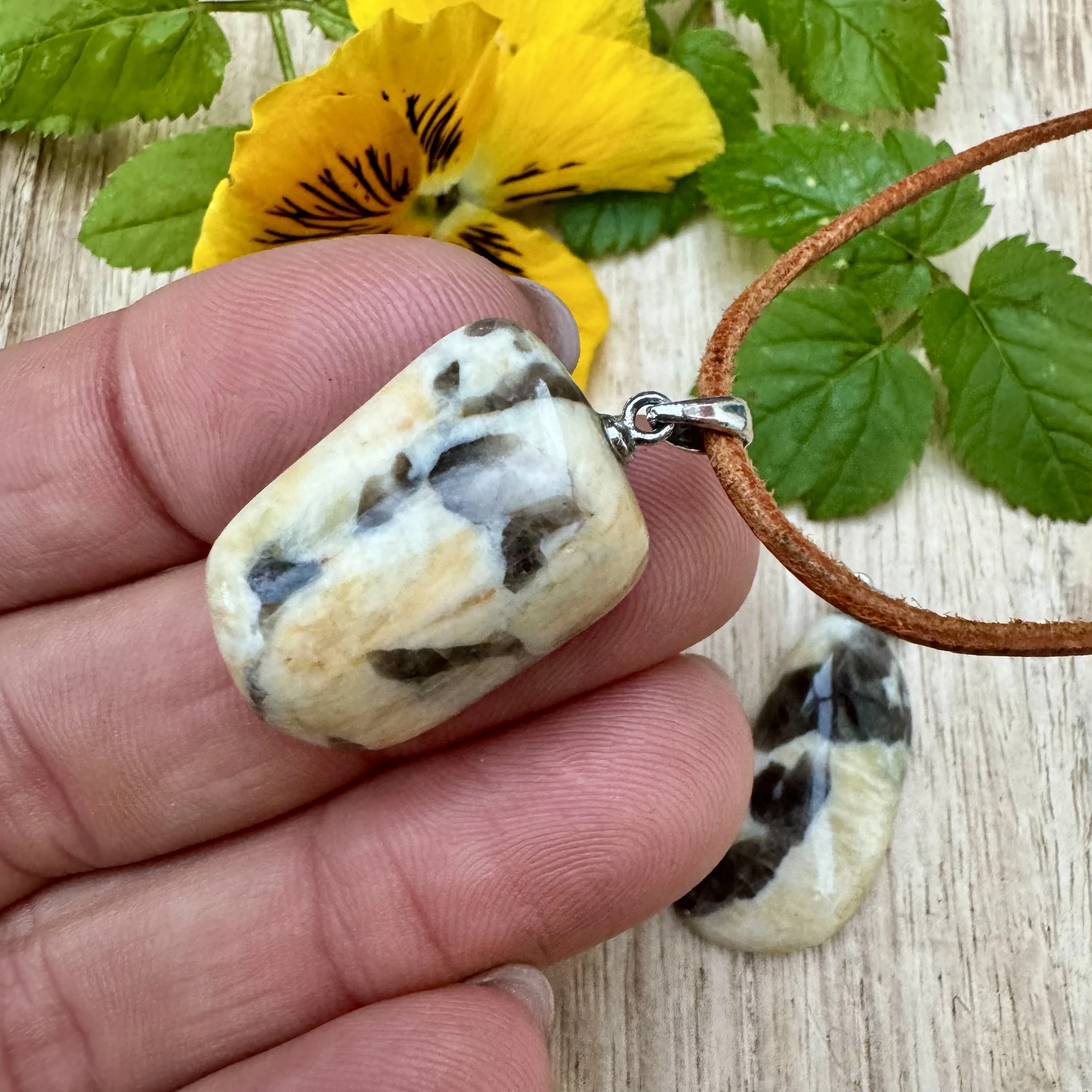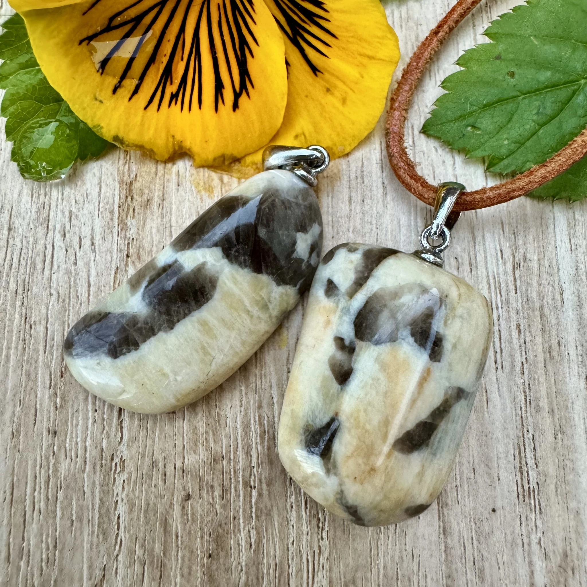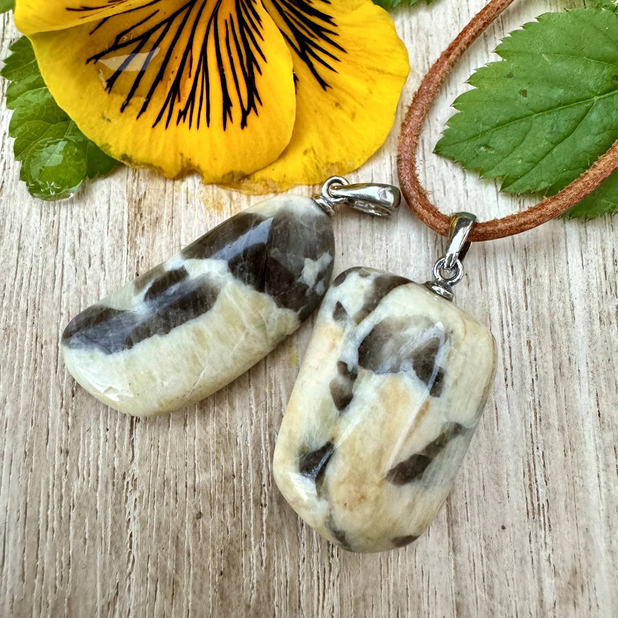 Lihvitud feldspar ehk graafiline päevakivi - ripats 925 hõbedast aasaga.