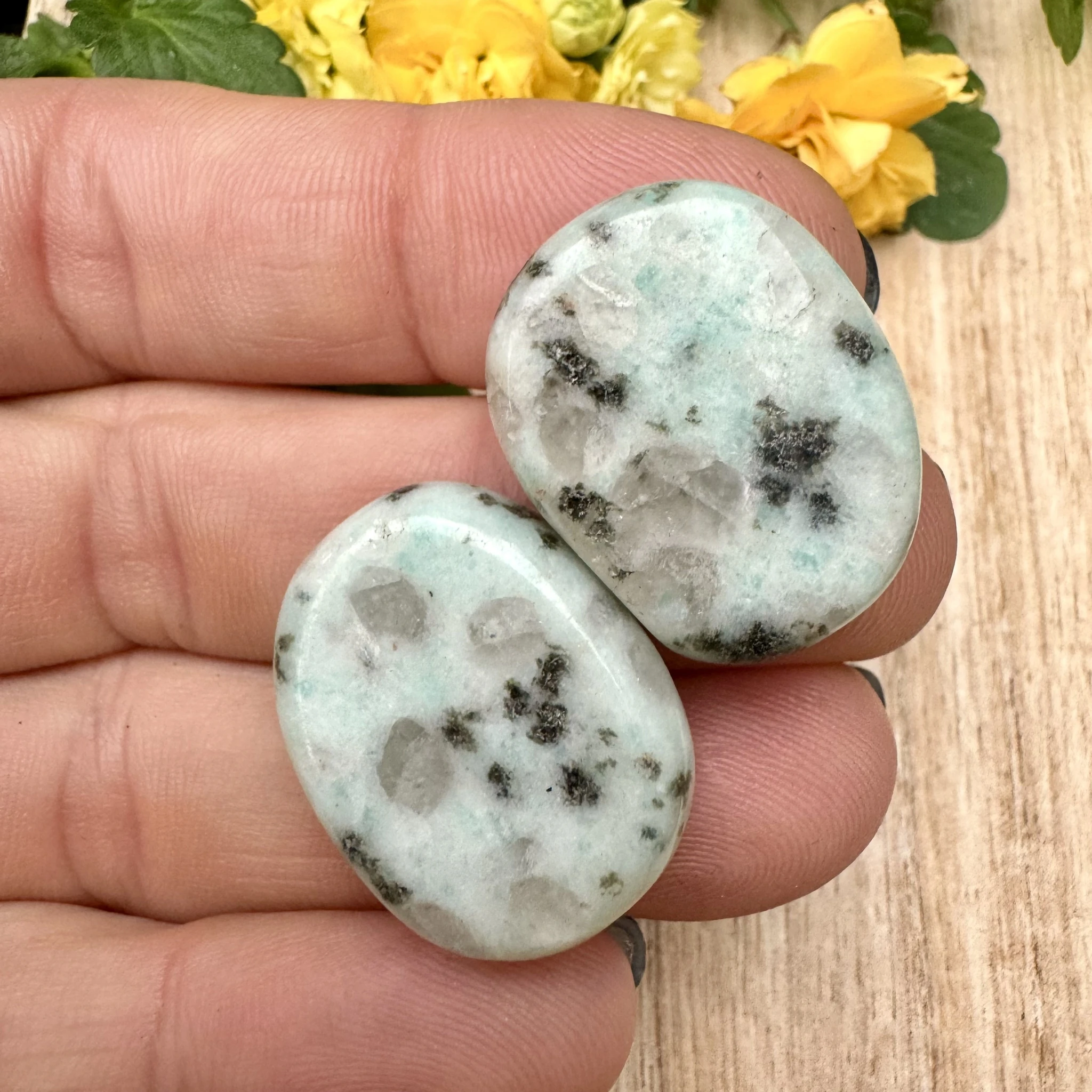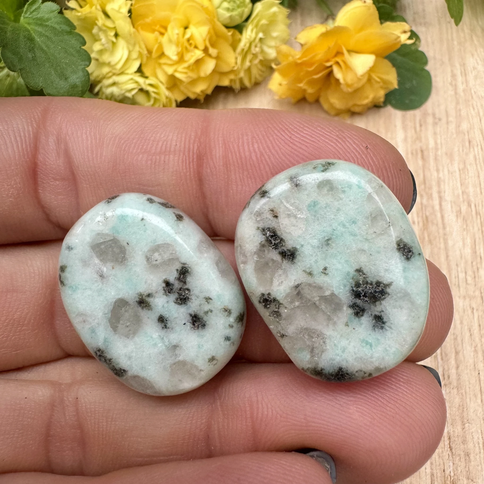 Lihvitud lapik kiivi jaspis.
