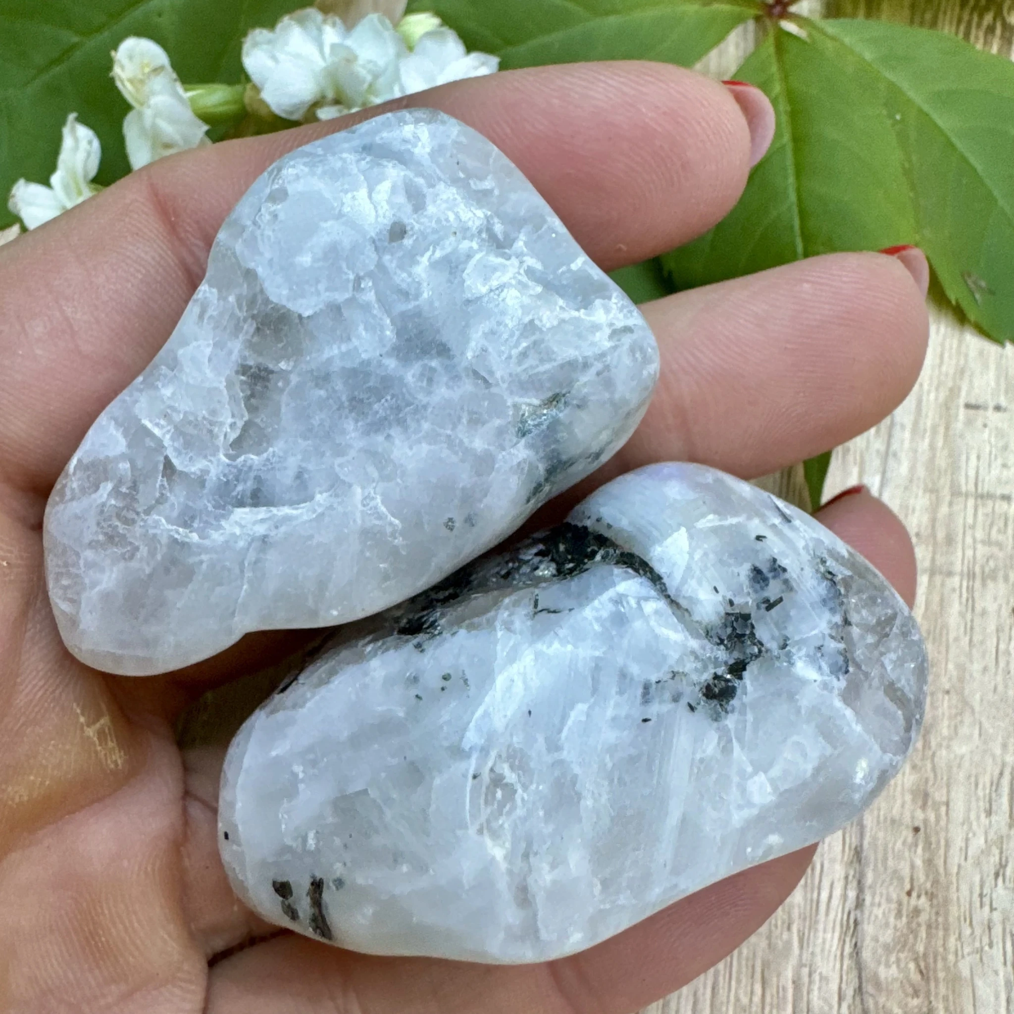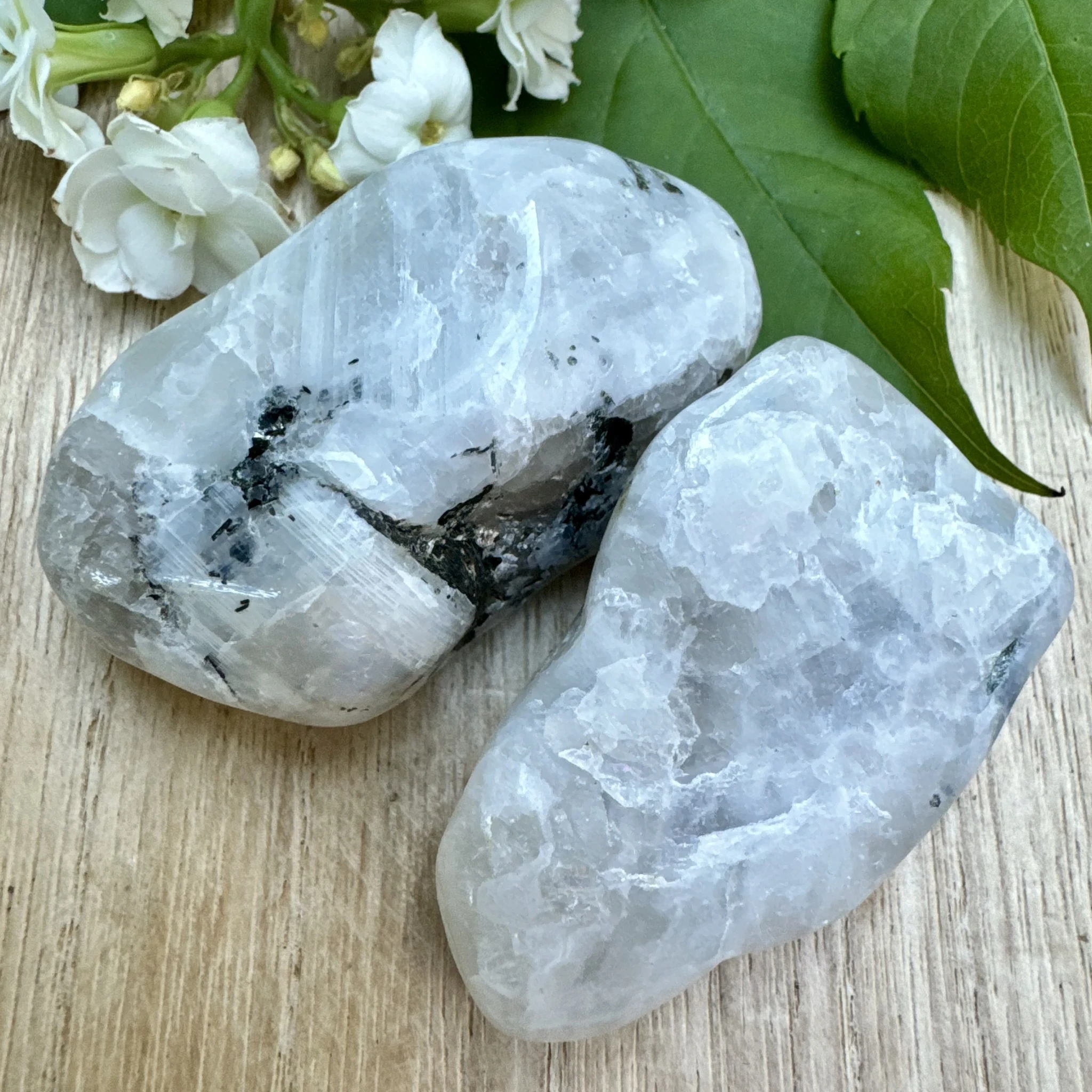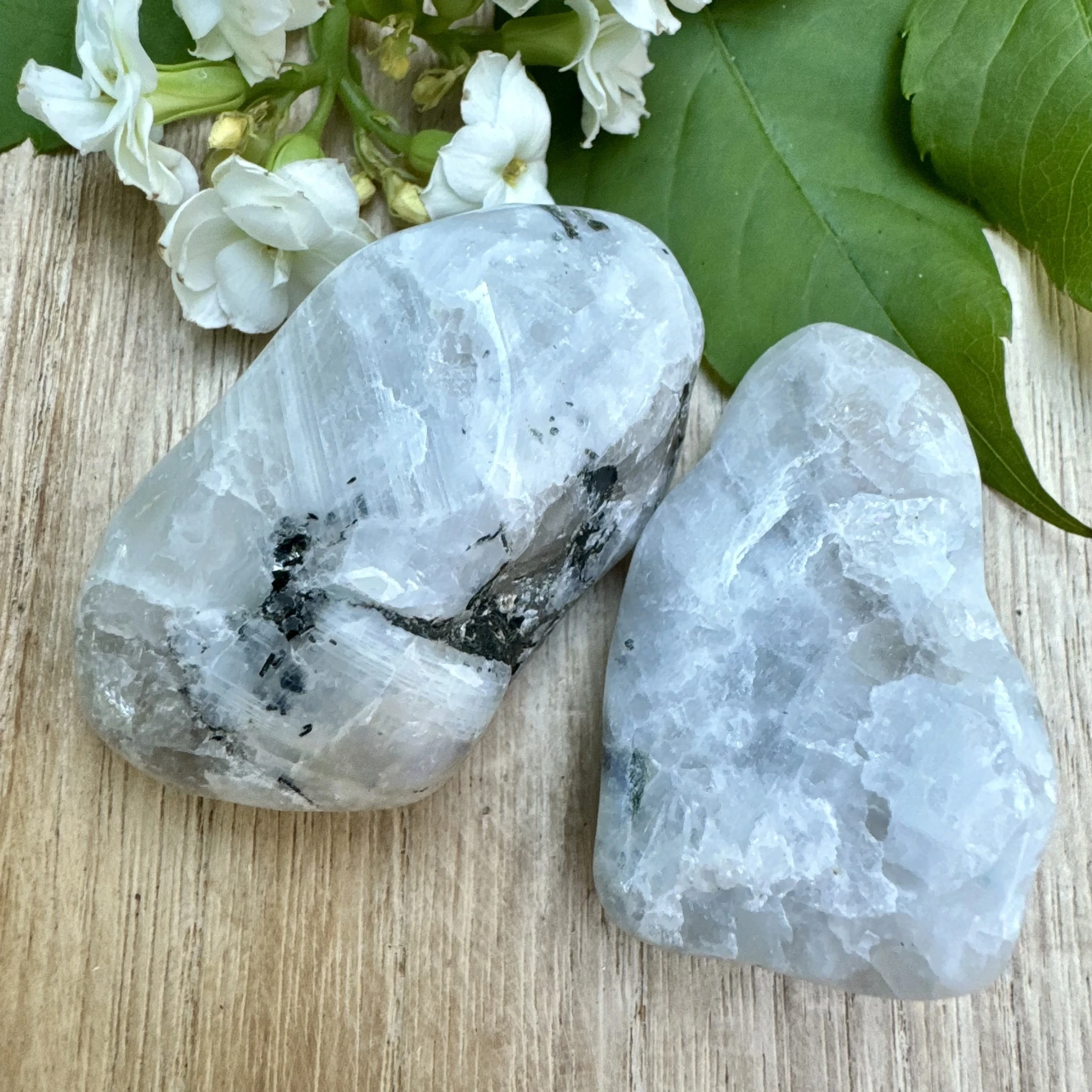 Lihvitud suur vikerkaare kuukivi.