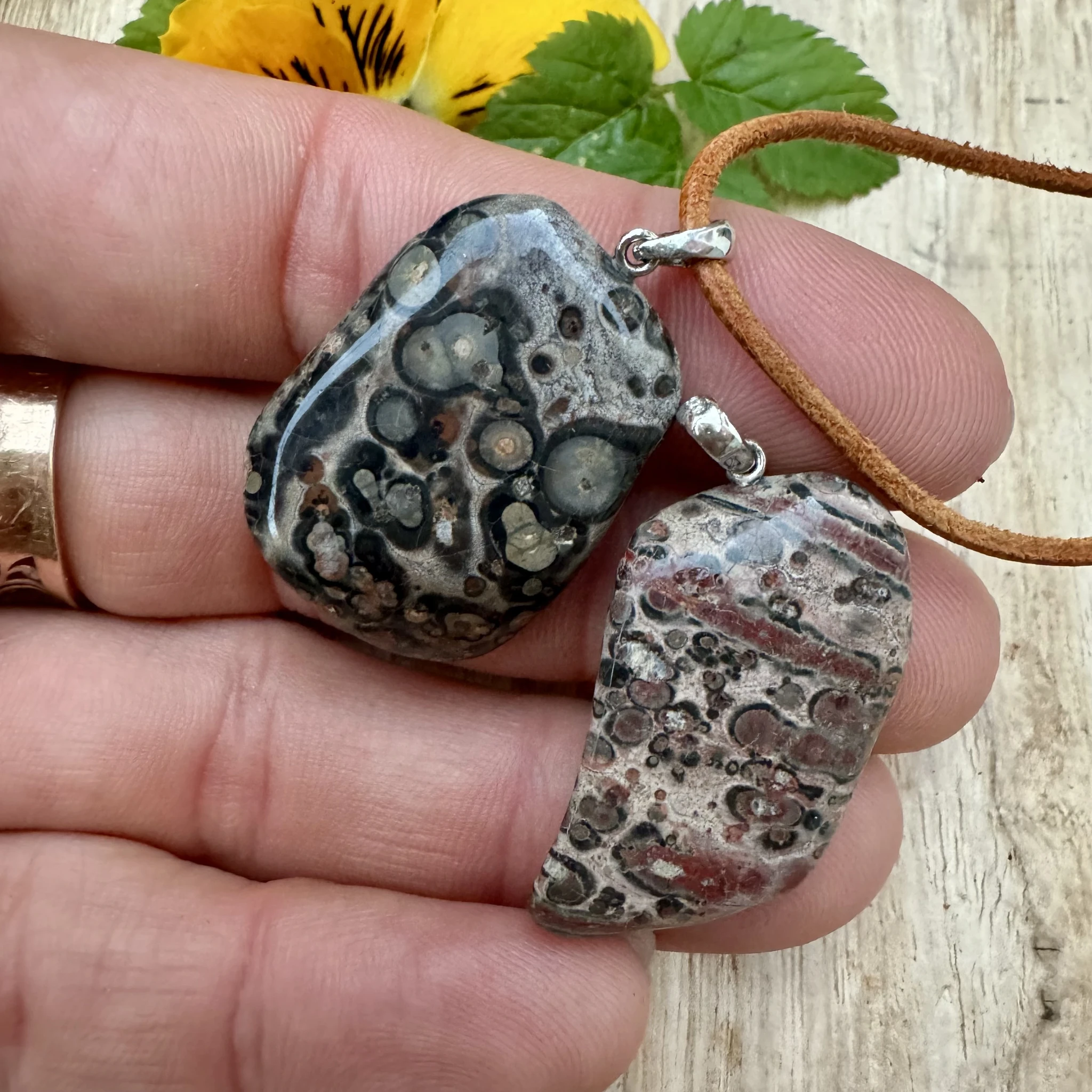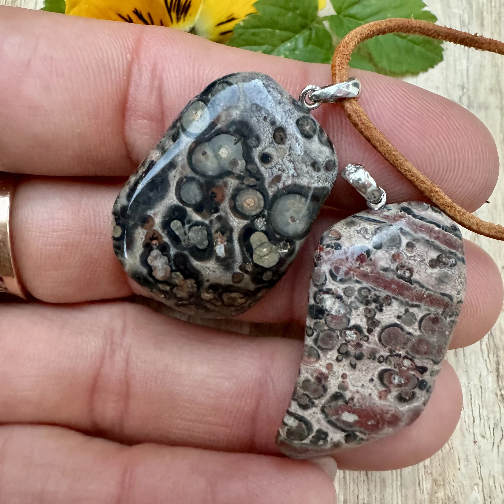 Leopardjaspist seostatakse eestkätt shamanistlike rännakutega ning spirituaalsete avastusretkedega. Ta kannab endas maist väge ning aitab mõista ennast ja oma kohta Universumis. Hea kaaslane keerulisel ajal, kui siht on silme eest kadunud. Päritolumaa: Mehhiko.