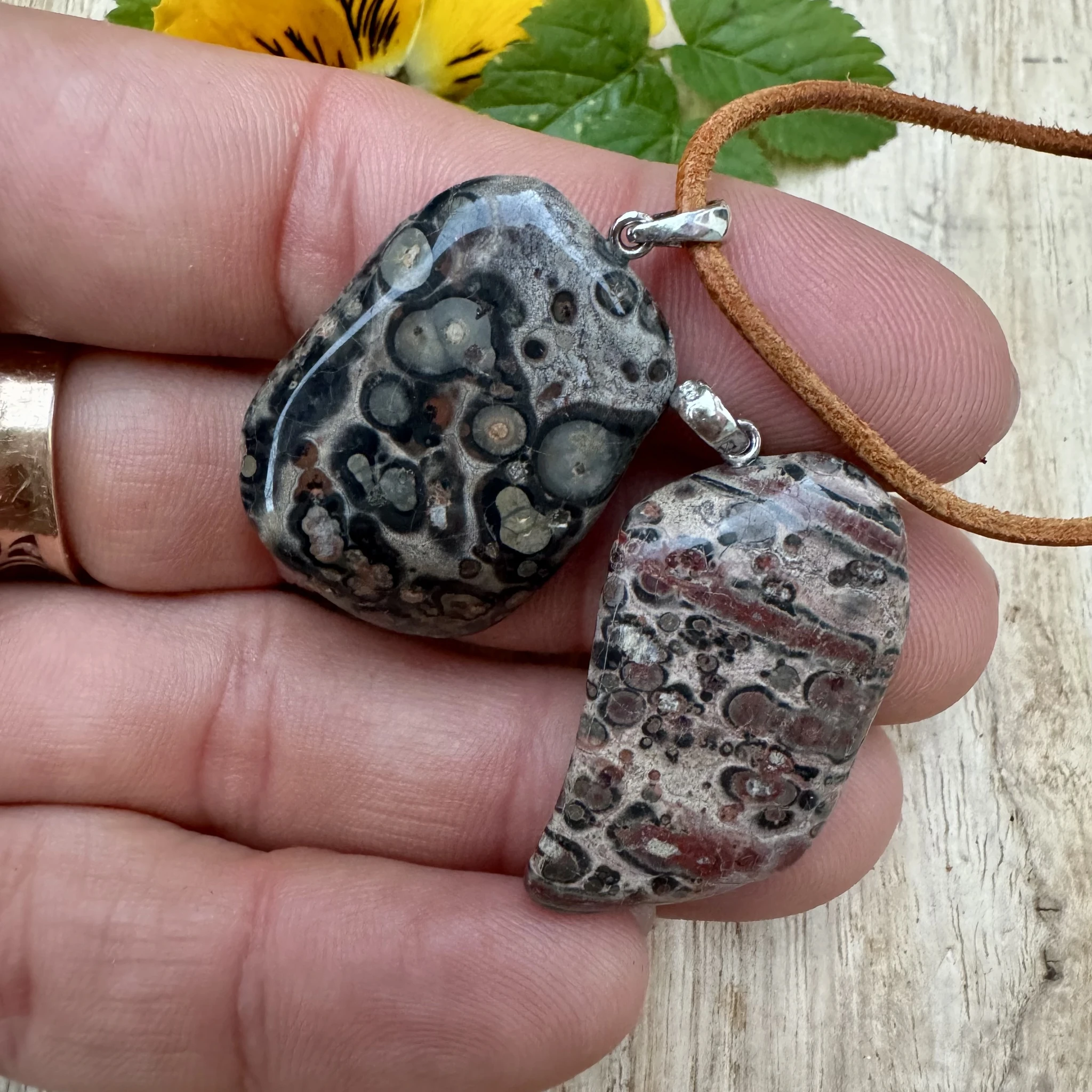 Lihvitud leopardjaspis 925 hõbedast aasaga.