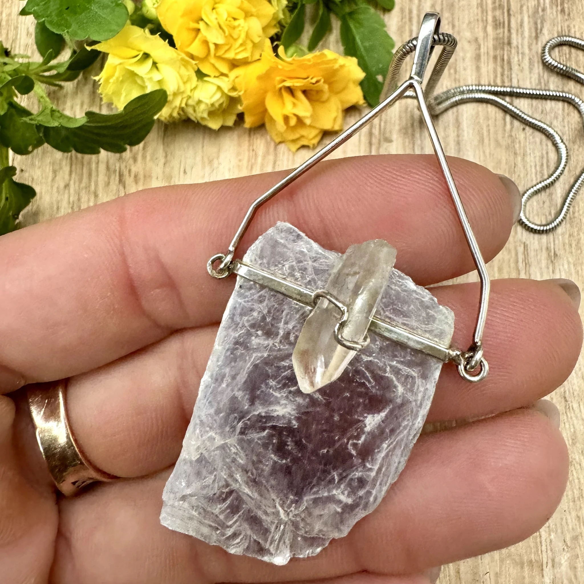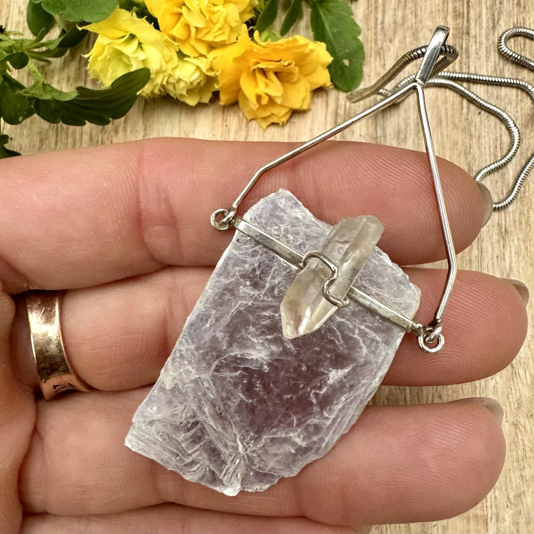 LEPIDOLIIT & MÄEKRISTALL - ripats (hõbetatud)
