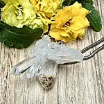 Hõberipats Alpidest pärit mäekristali kobaraga.