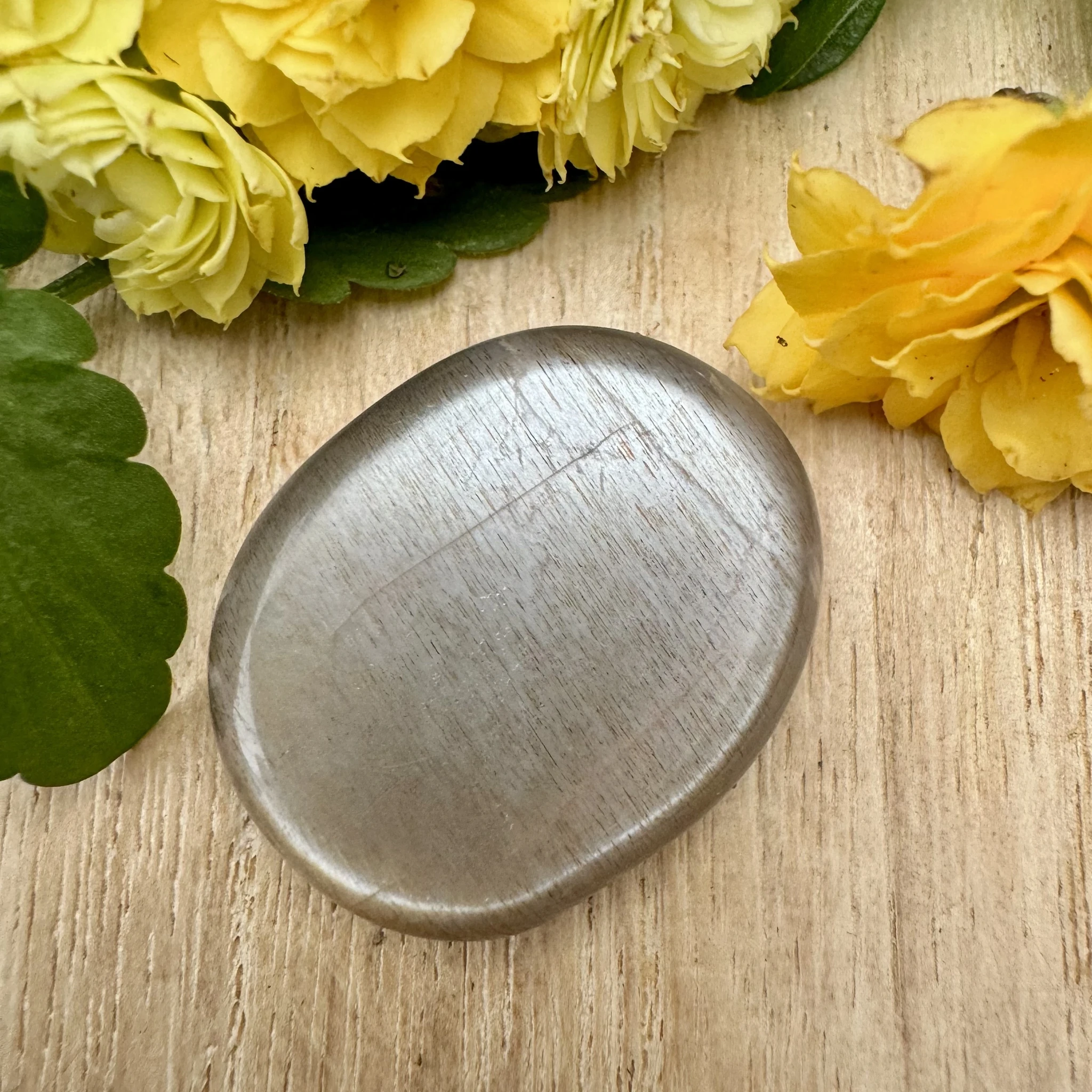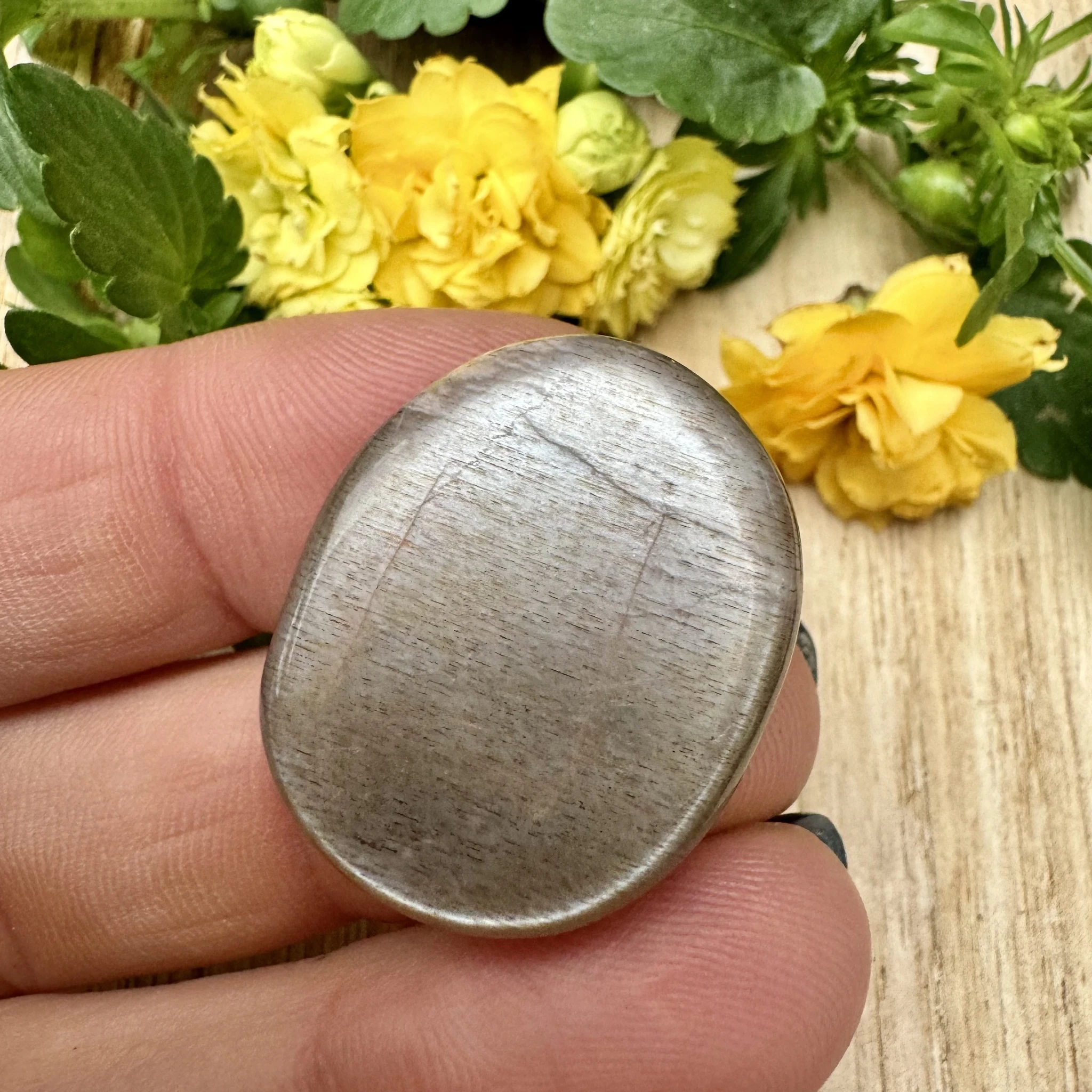Lihvitud lapik must kuukivi.