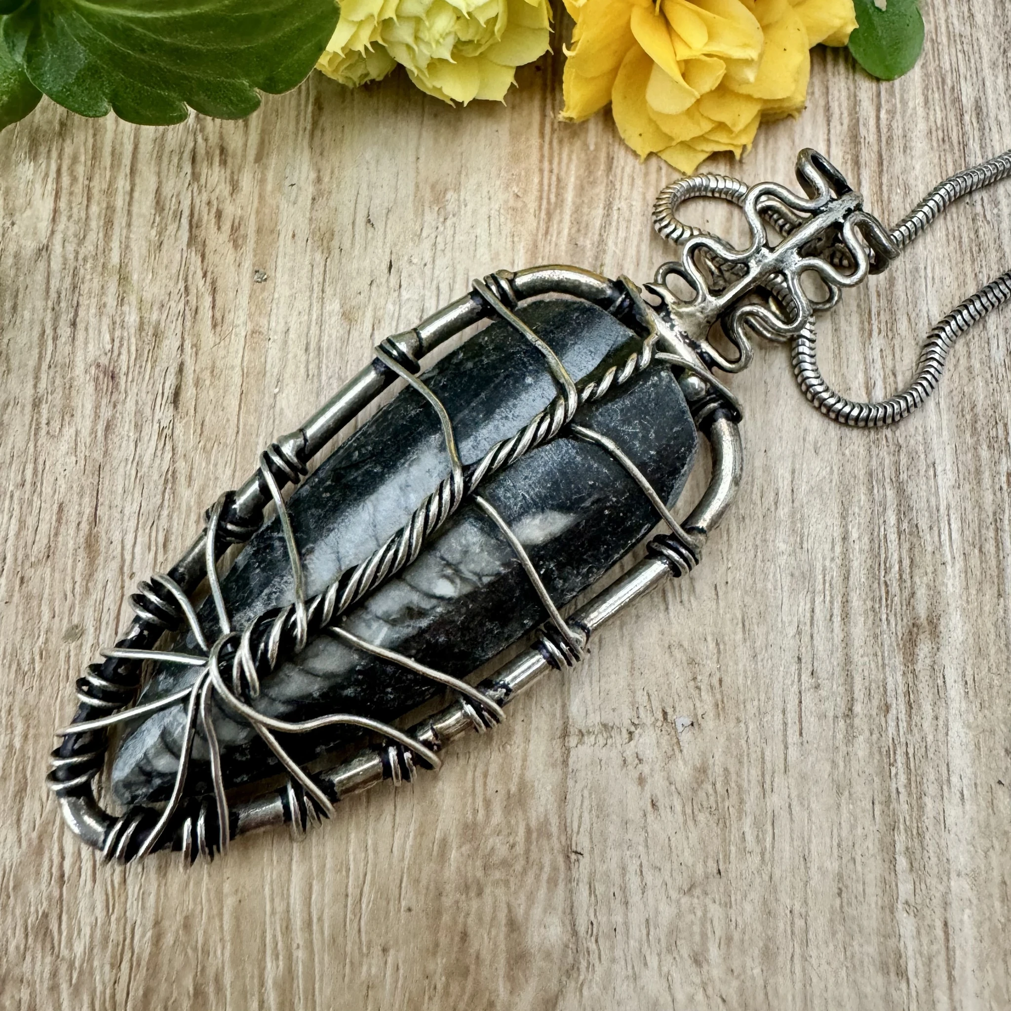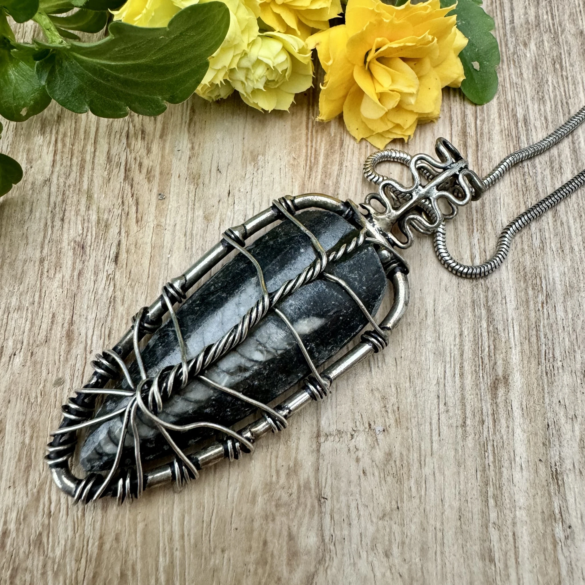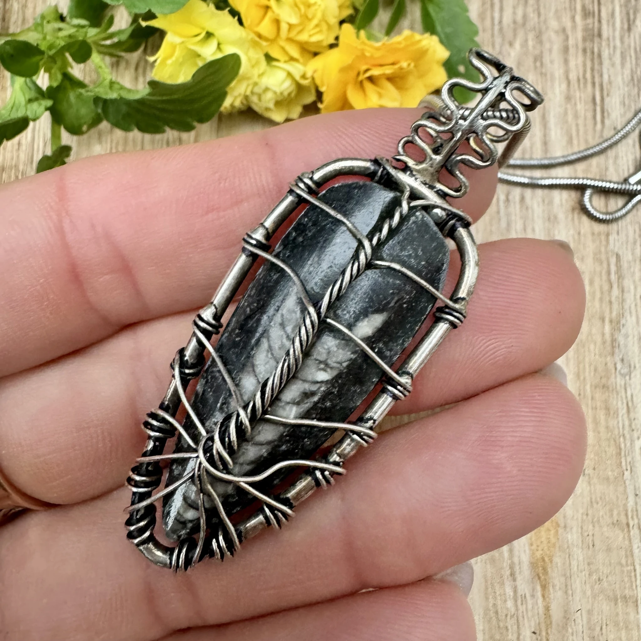 Ortotšeras on iidne mollusk, kes suri välja juba ligikaudu 400-550 miljonit aastat tagasi. Teda peetakse tegelikult üheks varaseimaks ookeani asukaks. Miljonite aastate jooksul kristalliseerus nende kest mustas marmoris ning seeläbi elavad ortotšerasid teatud mõttes ka täna edasi. Ortotšerase seostatakse kõige enam äriedu ning uhkusega (heas mõttes). Ta toetab inimese vajadust midagi luua ja saavutada. Samuti aitab see kristalliseerunud fossiil leevendada stressi, ärevust ning rahustada liialt hüplikku meelt. Teda peetakse ka selge ja fokusseeritud mõistuse kristalliks. Juurtšakra kristallina tuletab ortotšeras meelde, et igale pimedusele järgneb alati varem või hiljem uus valgus - teisisõnu ka kõige pikemale ja süngemale ööle järneb alati koidik. Juba iidsetest aegadest on arvatud, et fossiilid aitavad inimest motiveerida ning soosivad radikaalseid muutuseid ja nö taassündi. Ortotšerasist võib olla palju abi pikaajalisest depressioonist taastumisel ning taas oma sihi leidmisel. Tugeva maaenergia kandjana aitab ortotšeras tasakaalustada emotsioone, tõstab enesekindlust ning avab meele innovaatilistele lahendustele. Teda peetakse ka tegude ja saavutuste kristalliks. Ortotšeras on ka hea spirituaalne tervendaja. Ta aitab toime tulla eelmistest eludest pärit väljakutsetega, soosib sügavatest sisemistest hirmudest üle astumist ning minevikust lahti laskmist.