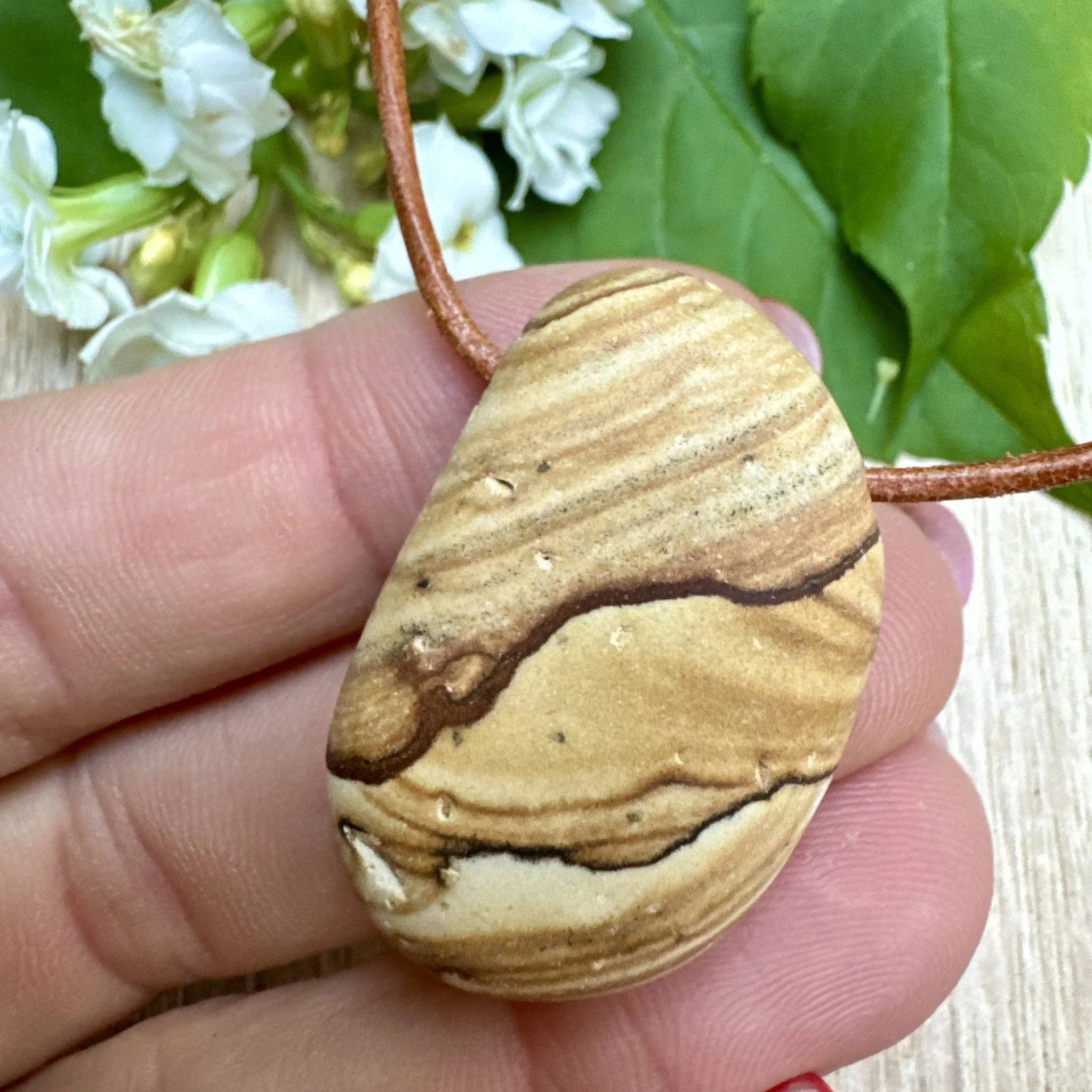 Mati lihviga eriline kristall, mis näeb hea välja nii nahast paela, kui keti otsas.