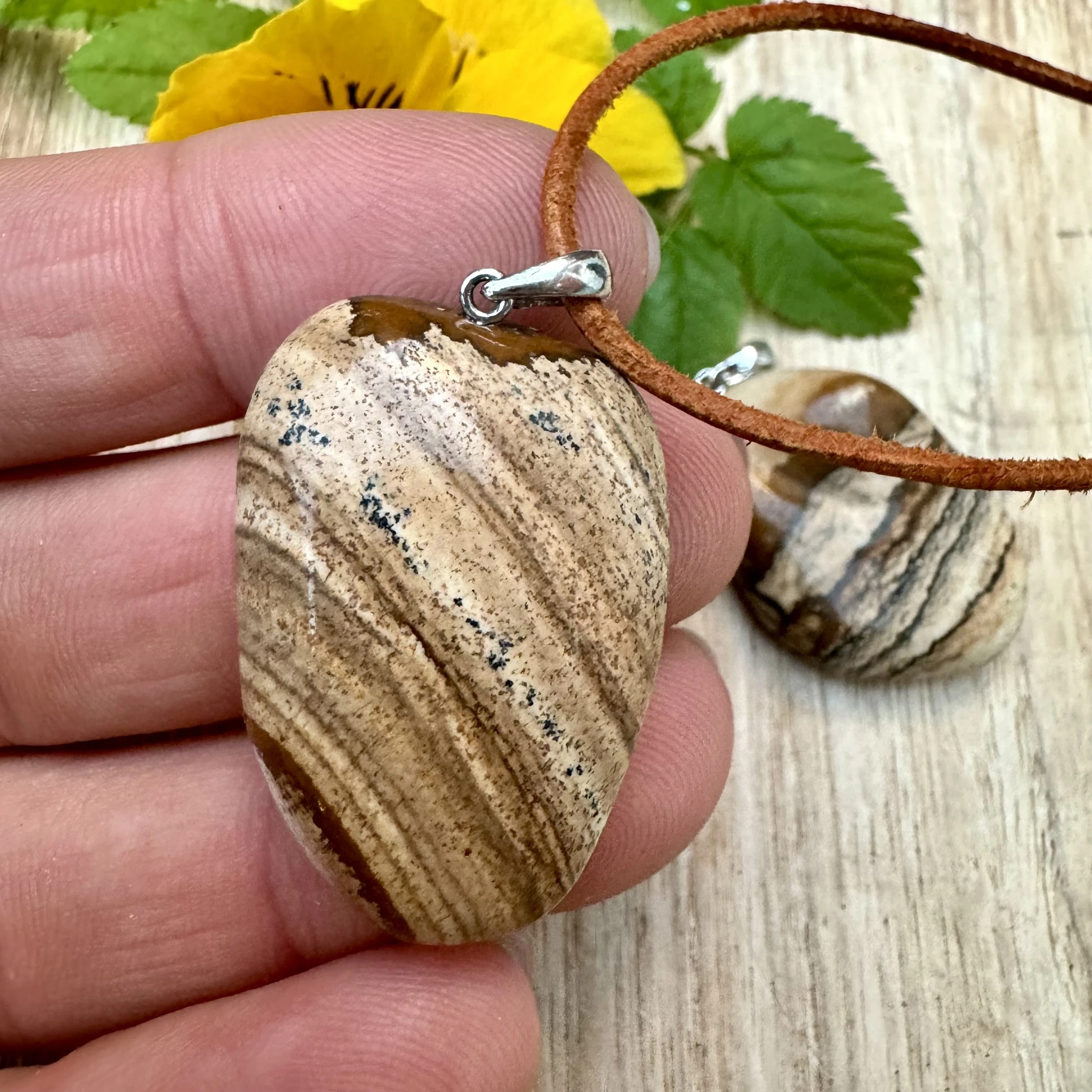 Lihvitud piltjaspisest 925 hõbedast aasaga ripats.