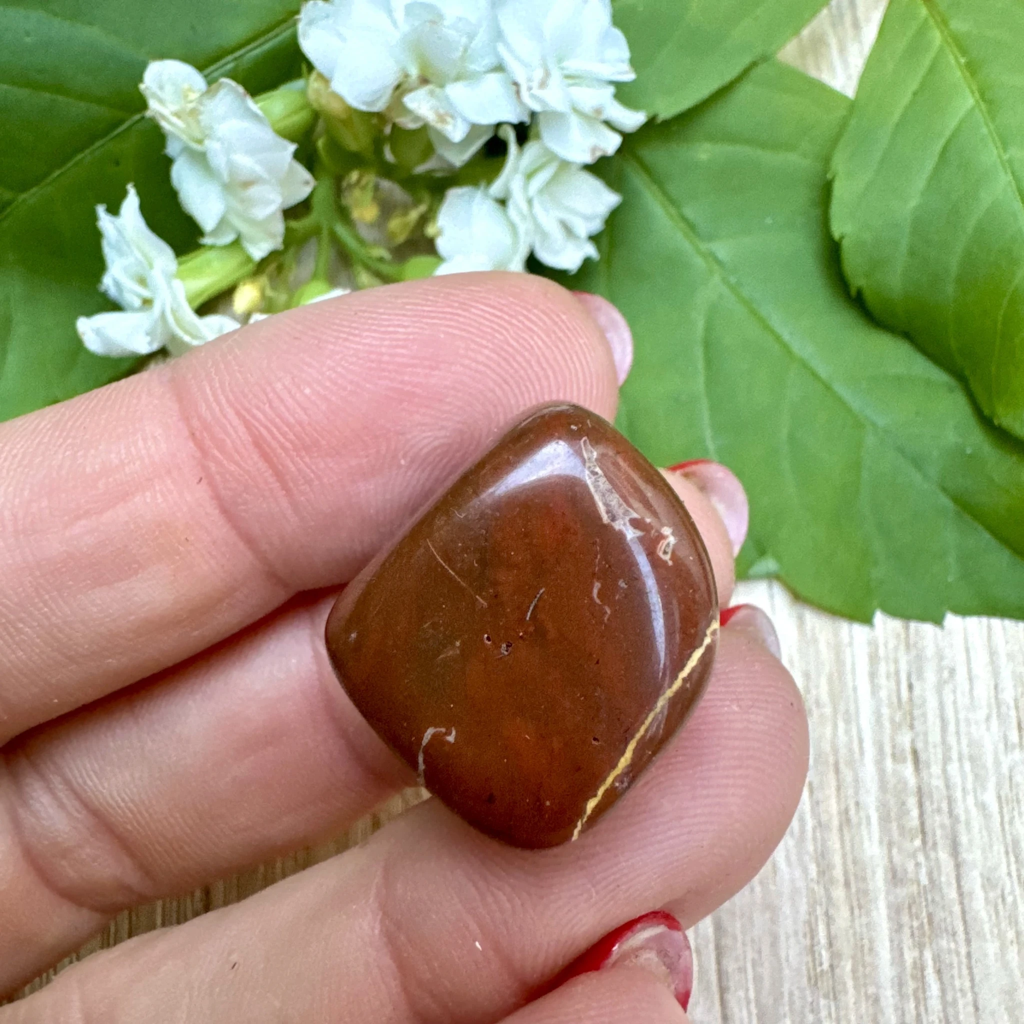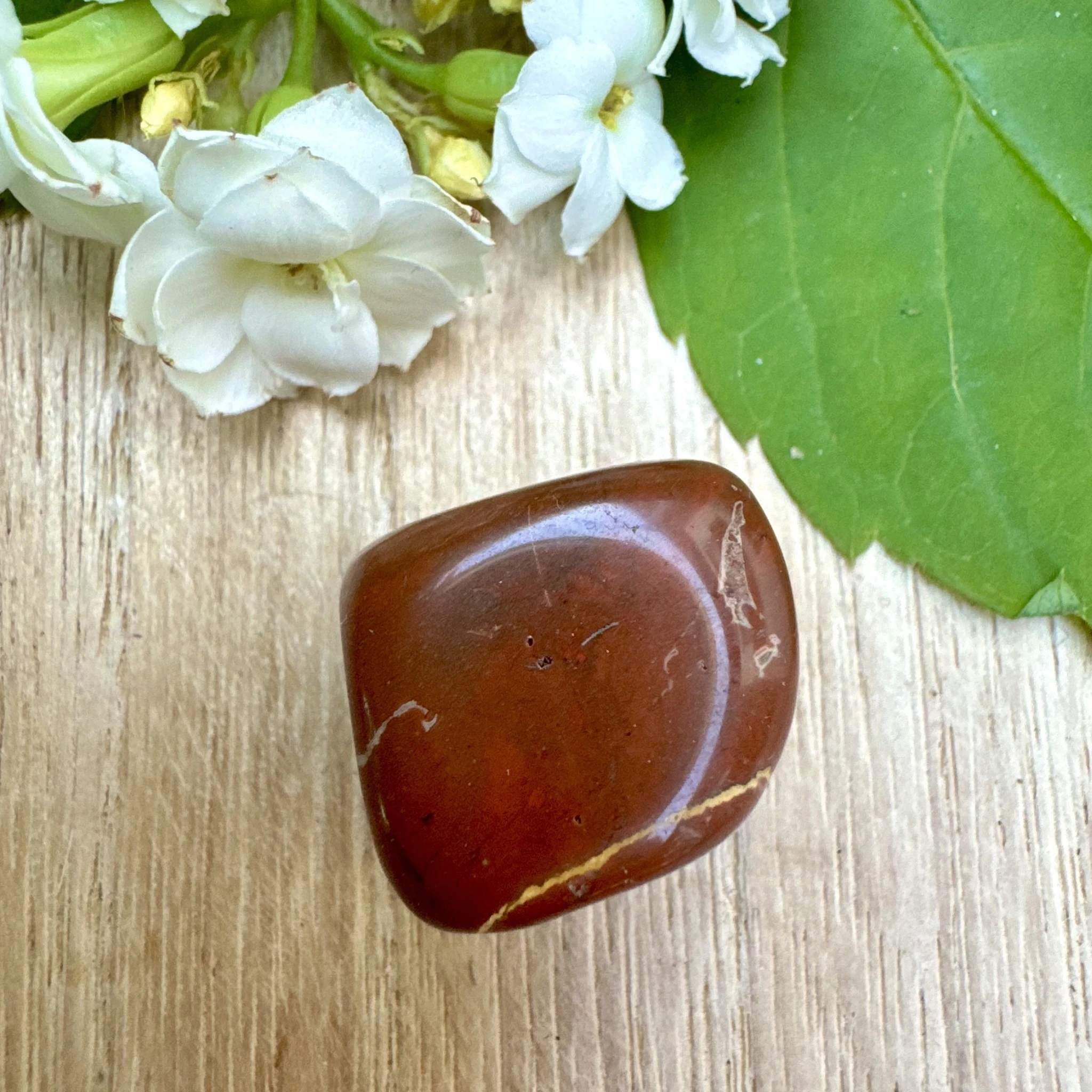 Punane jaspis on tugeva Ürgemaduse energia kandja, mistõttu kasutatakse teda sageli tervendamisel. Punane jaspis on hea menstruaalvaevuste leevendaja ning abiline sünnitusel (antiikaja arstide arvates aitas peatada sünnitusel tekkivat verejooksu). Seda kristalli on peetud ka noorte naiste kristalliks, kes soovivad rõhutada oma naiselikke võlusid ning graatsiat. Veelgi enam - punast jaspist peetakse ka seksuaalsust suurendavaks ning tasakaalustavaks kristalliks. Punane jaspis on muuhulgas ka väga hea kaitsekivi ning seetõttu leiab ta laialdast kasutust kaitsemaagias. Nimelt peaks just punane jaspis kinni püüdma kogu kandja suunas saadetud negatiivse energia ning seejärel selle algallikale tagasi saatma. Kaitsvate omaduste tõttu soovitatakse punast jaspist lähedal hoida ka nakkus- ning kopsuhaiguste korral. Parim juurtšakra tasakaalustaja. Päritolumaa: Aafrika