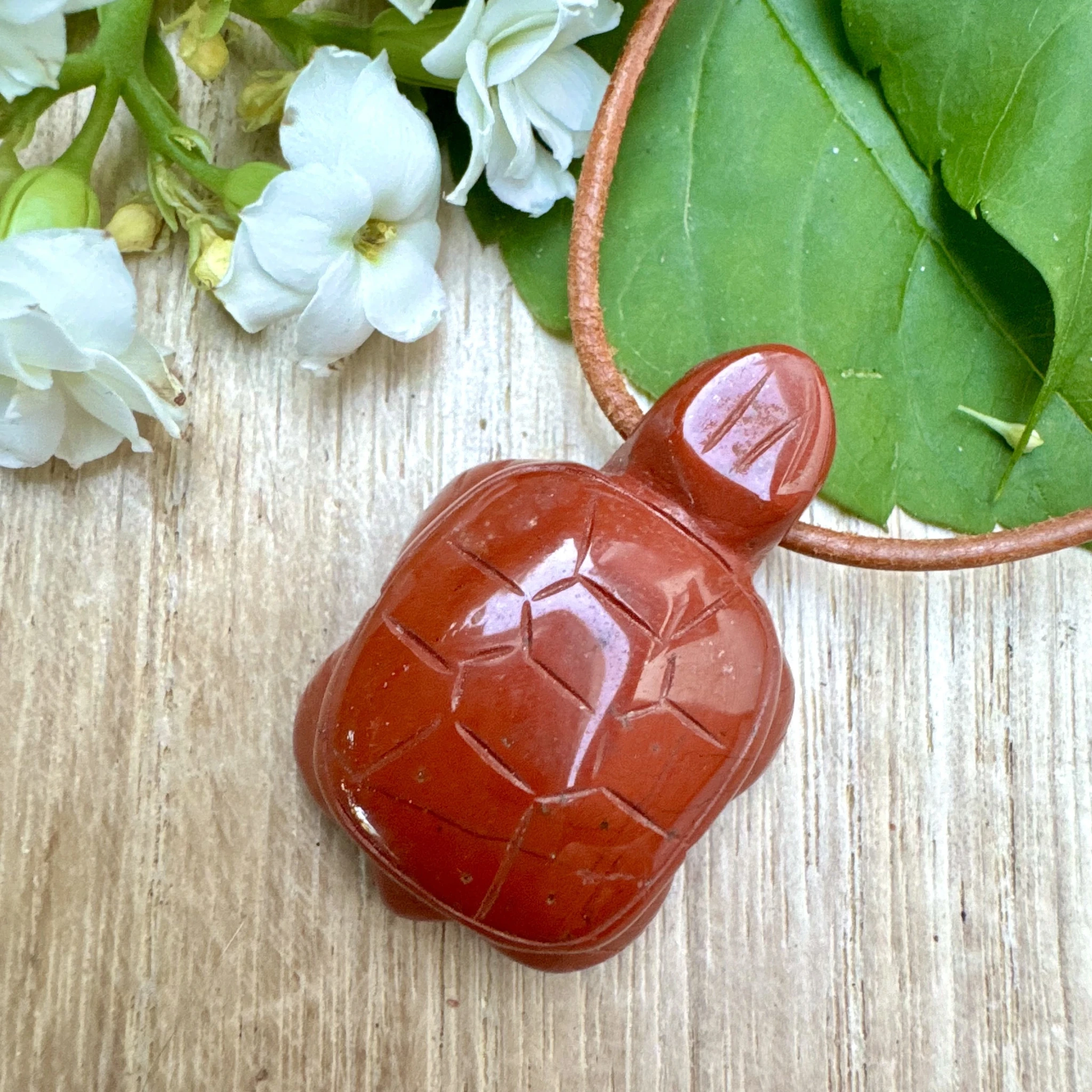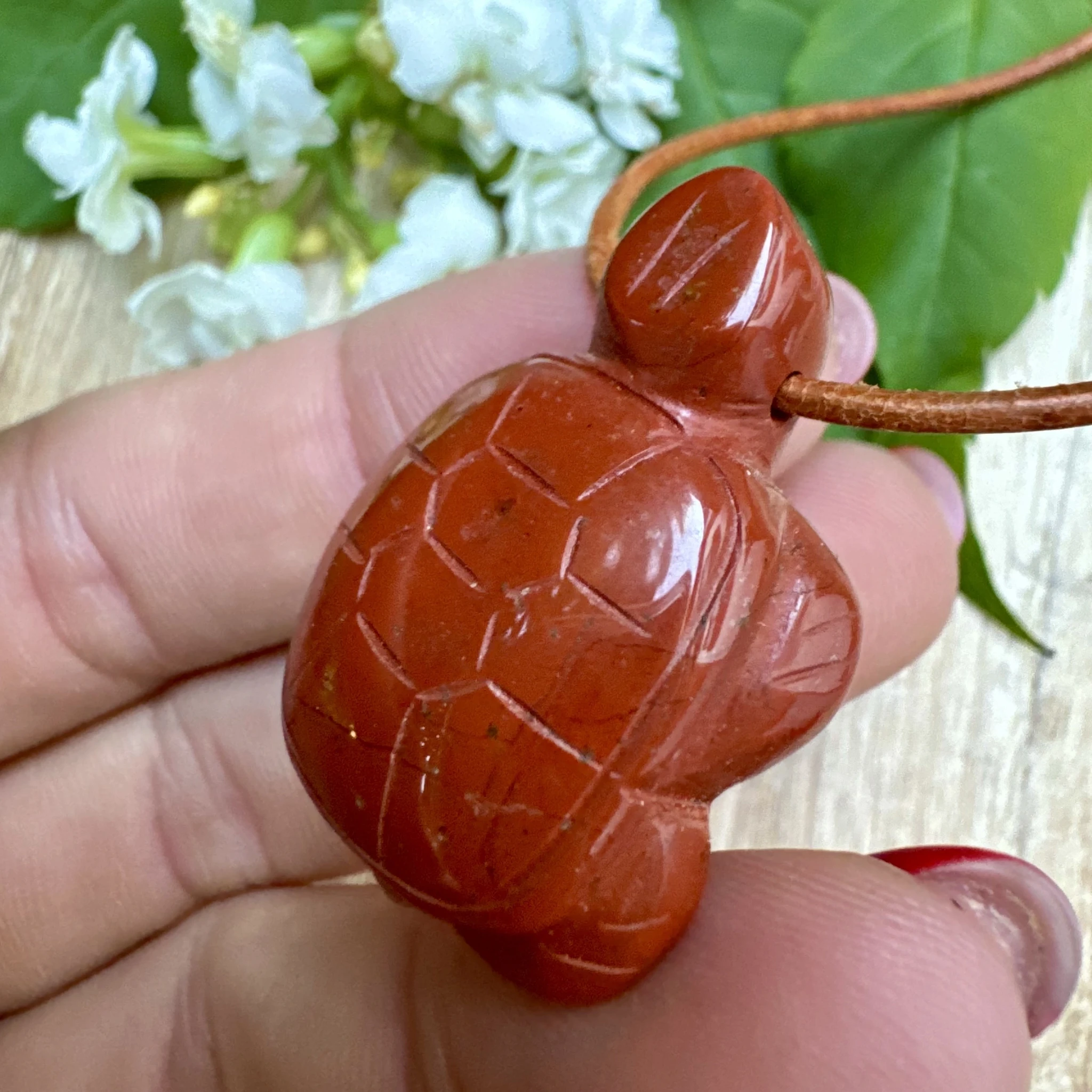 PUNANE JASPIS kilpkonn - auguga kivi / ripats