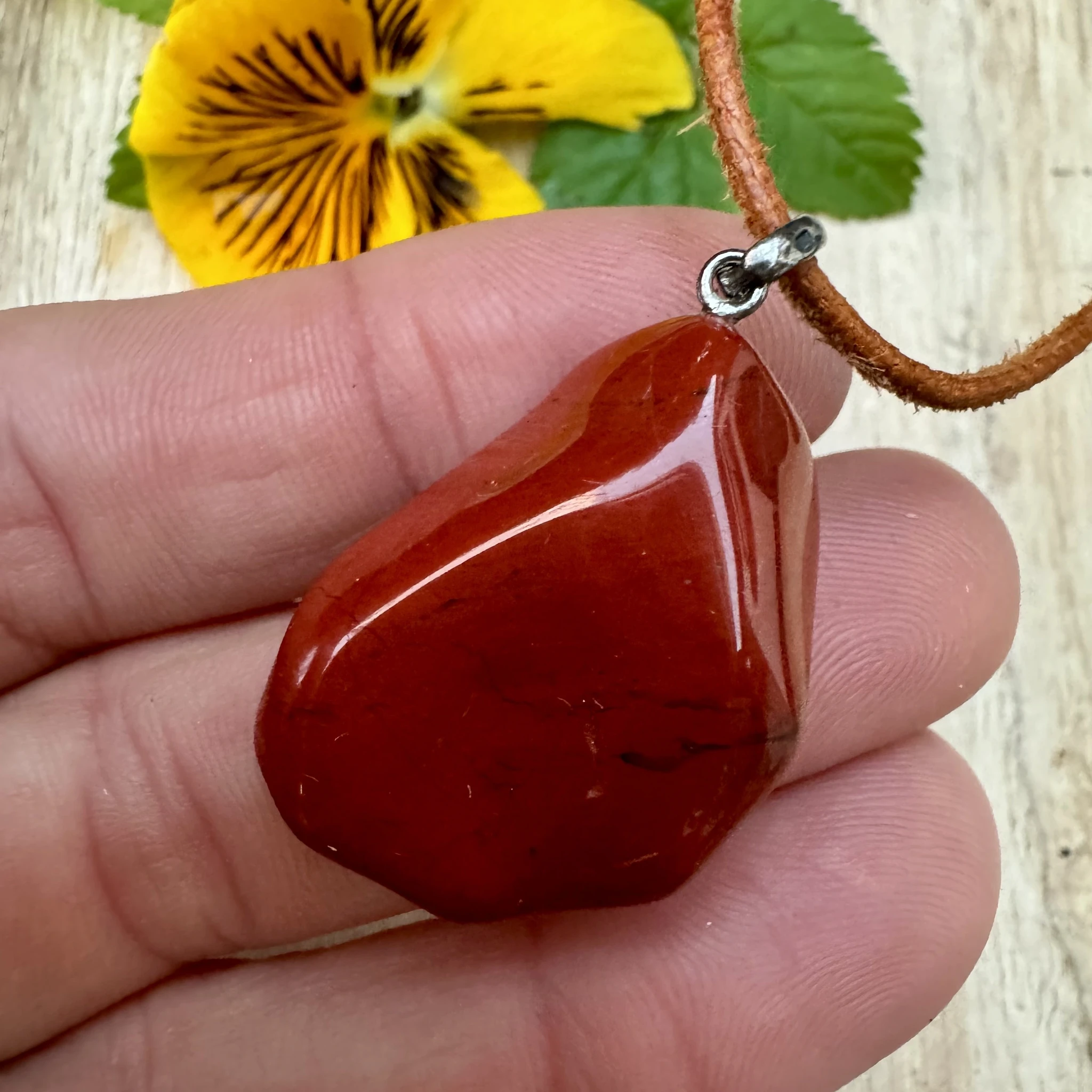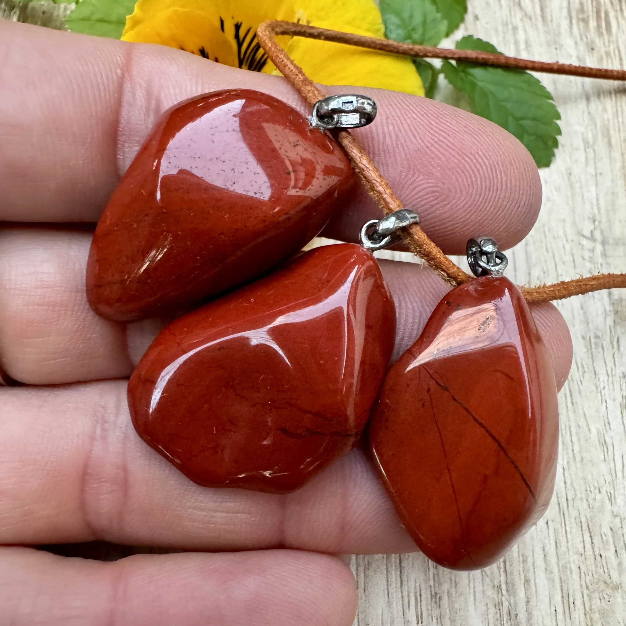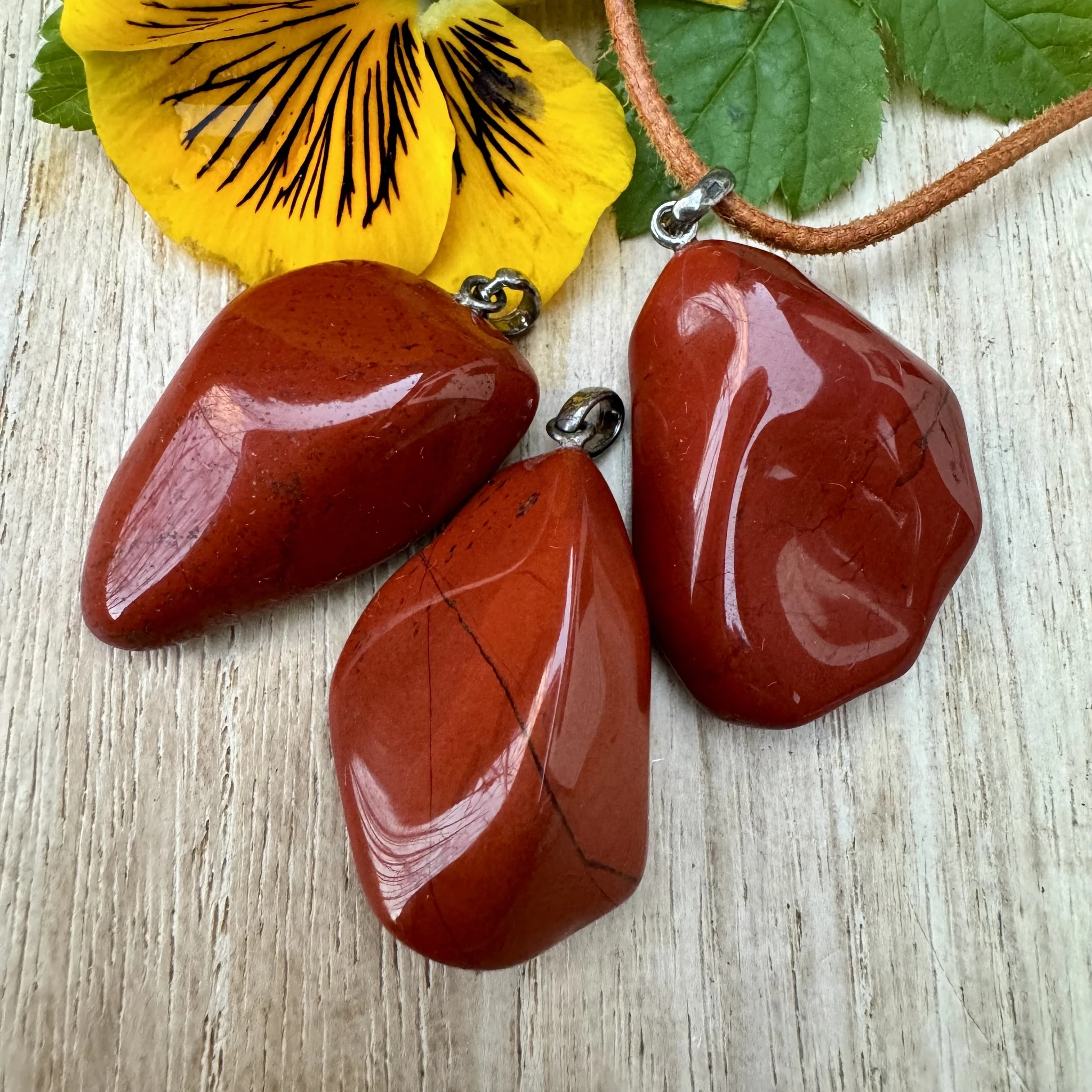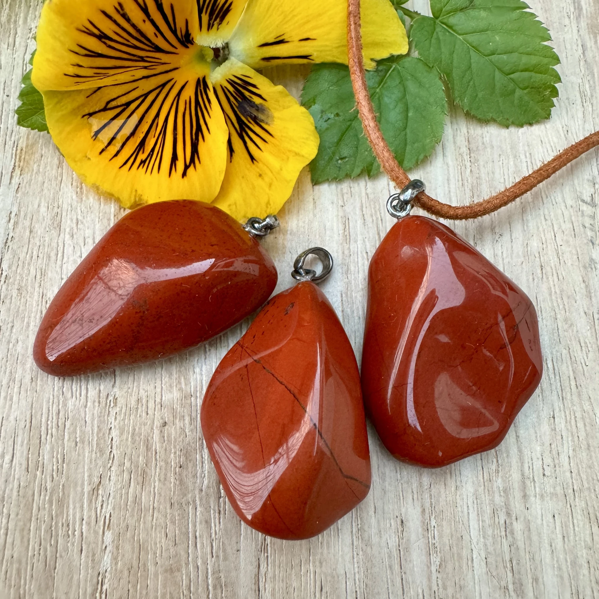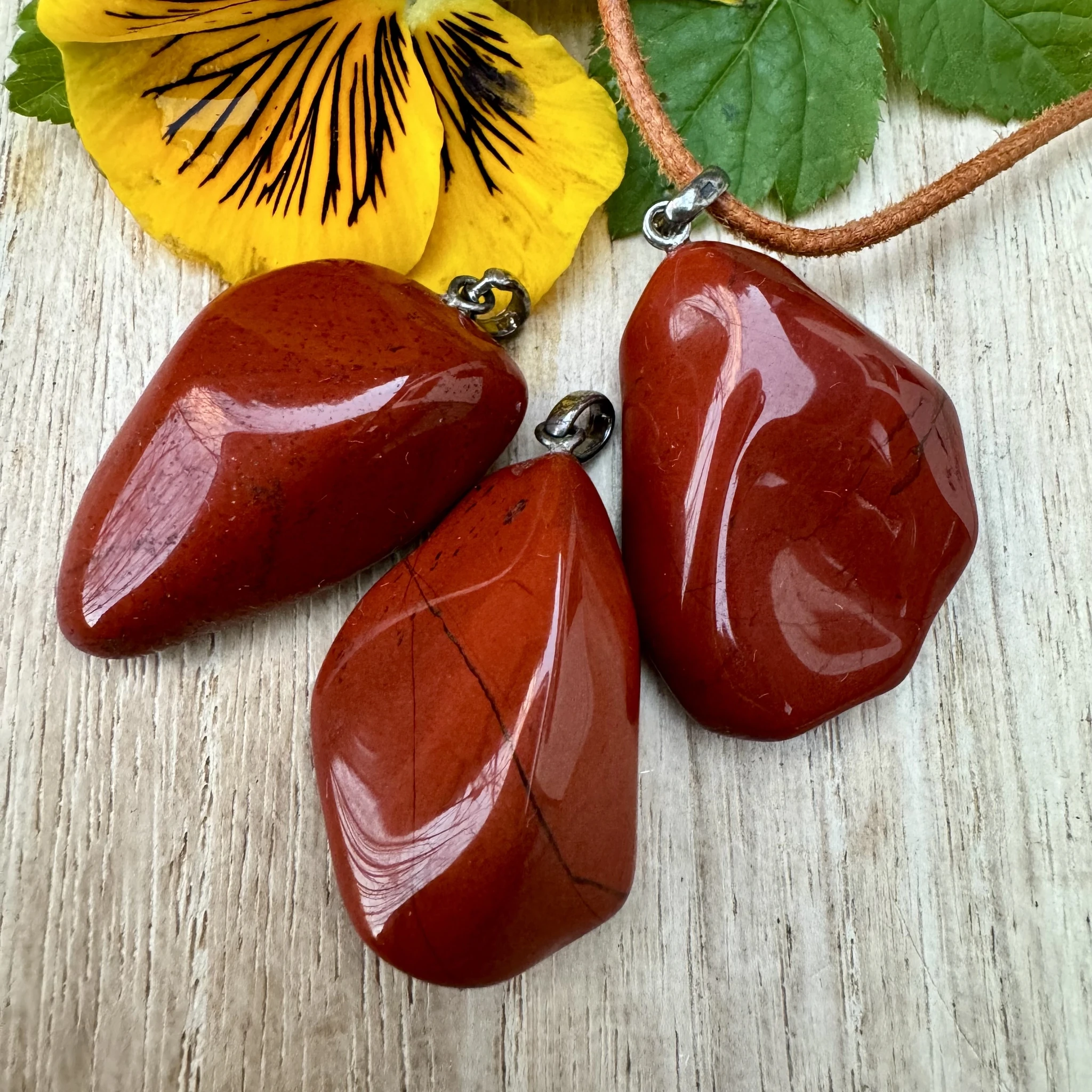 Lihvitud punane jaspis 925 hõbedast aasaga.