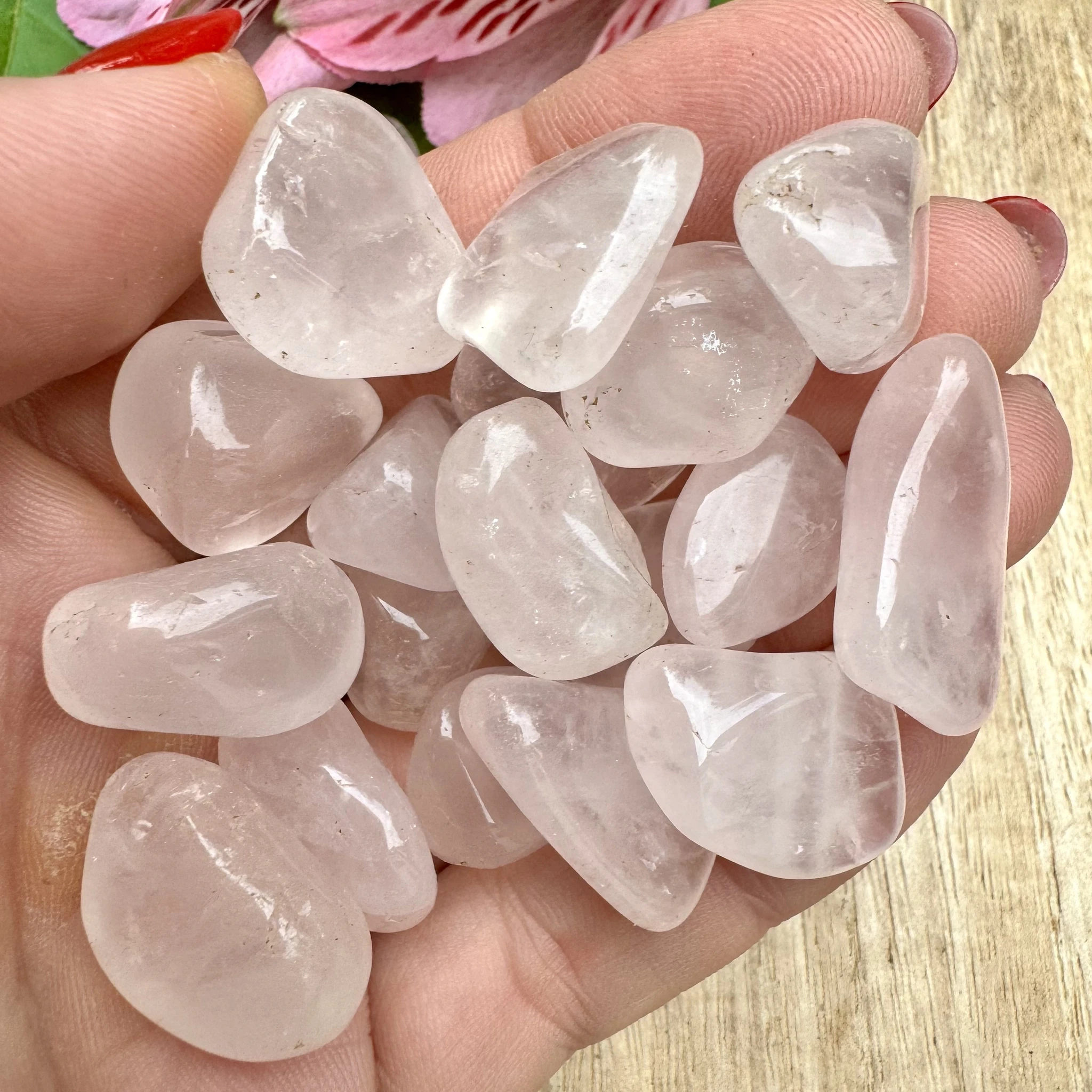 Lihvitud roosa kvarts.