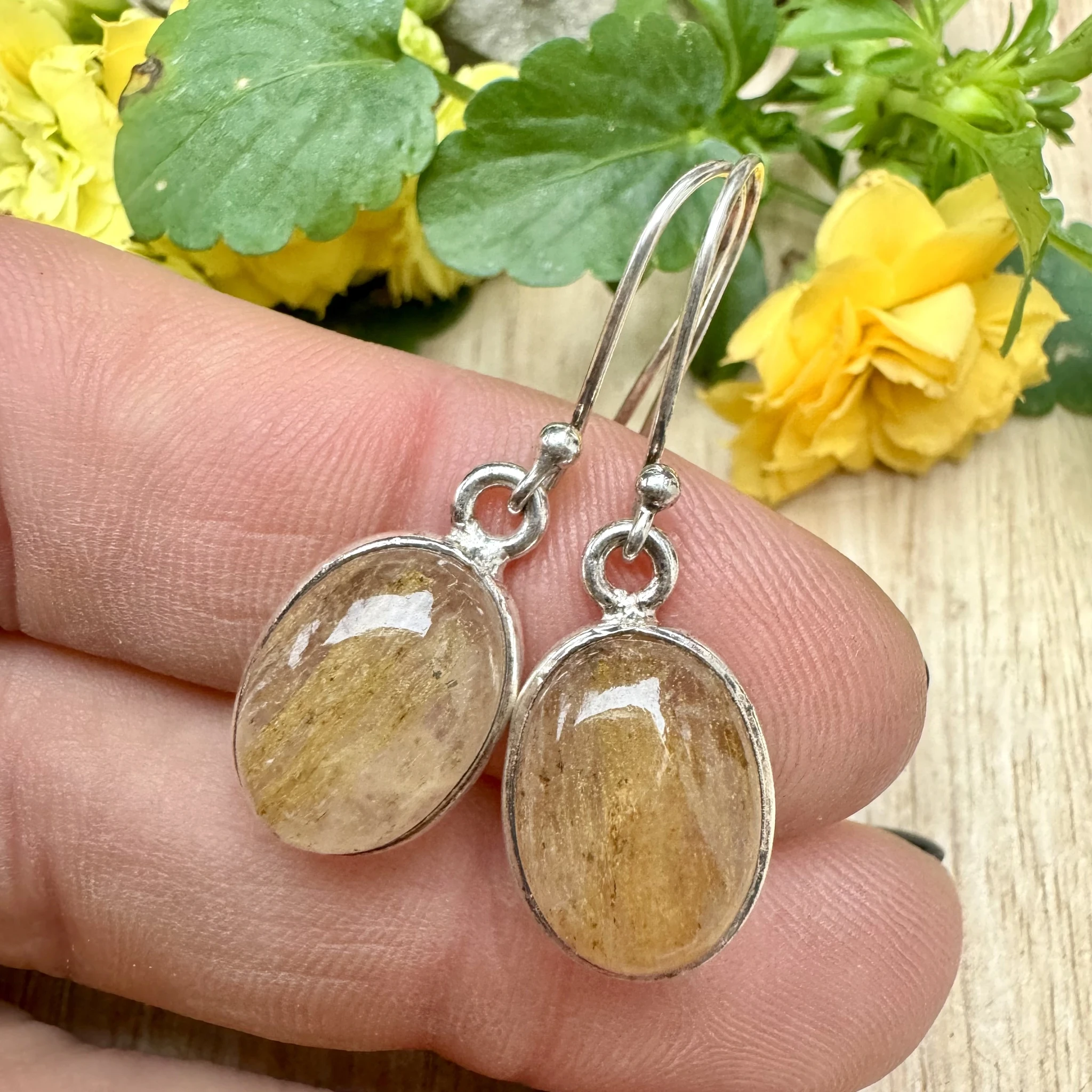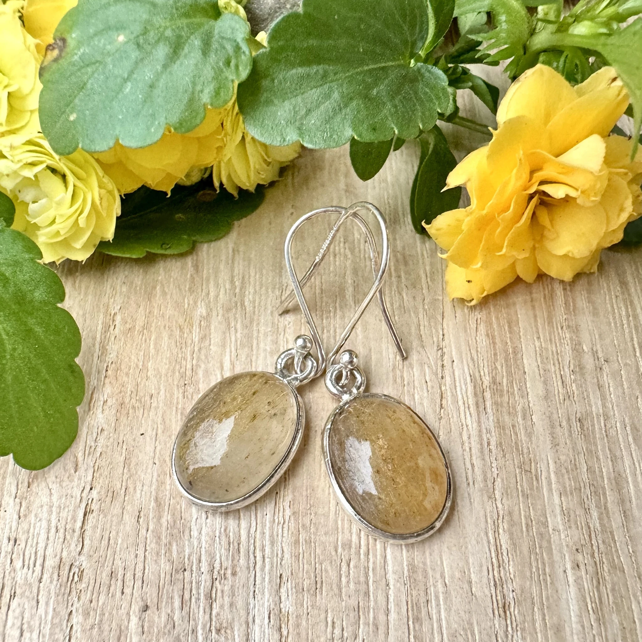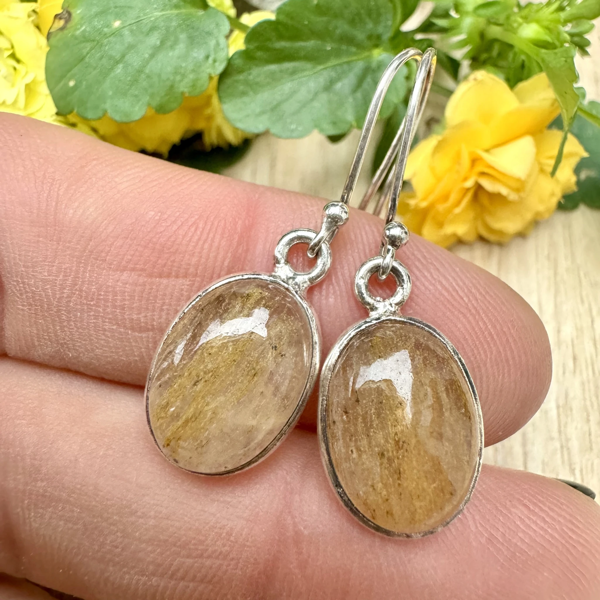 Hõbedast kõrvarõngad rutiilkvartsiga.