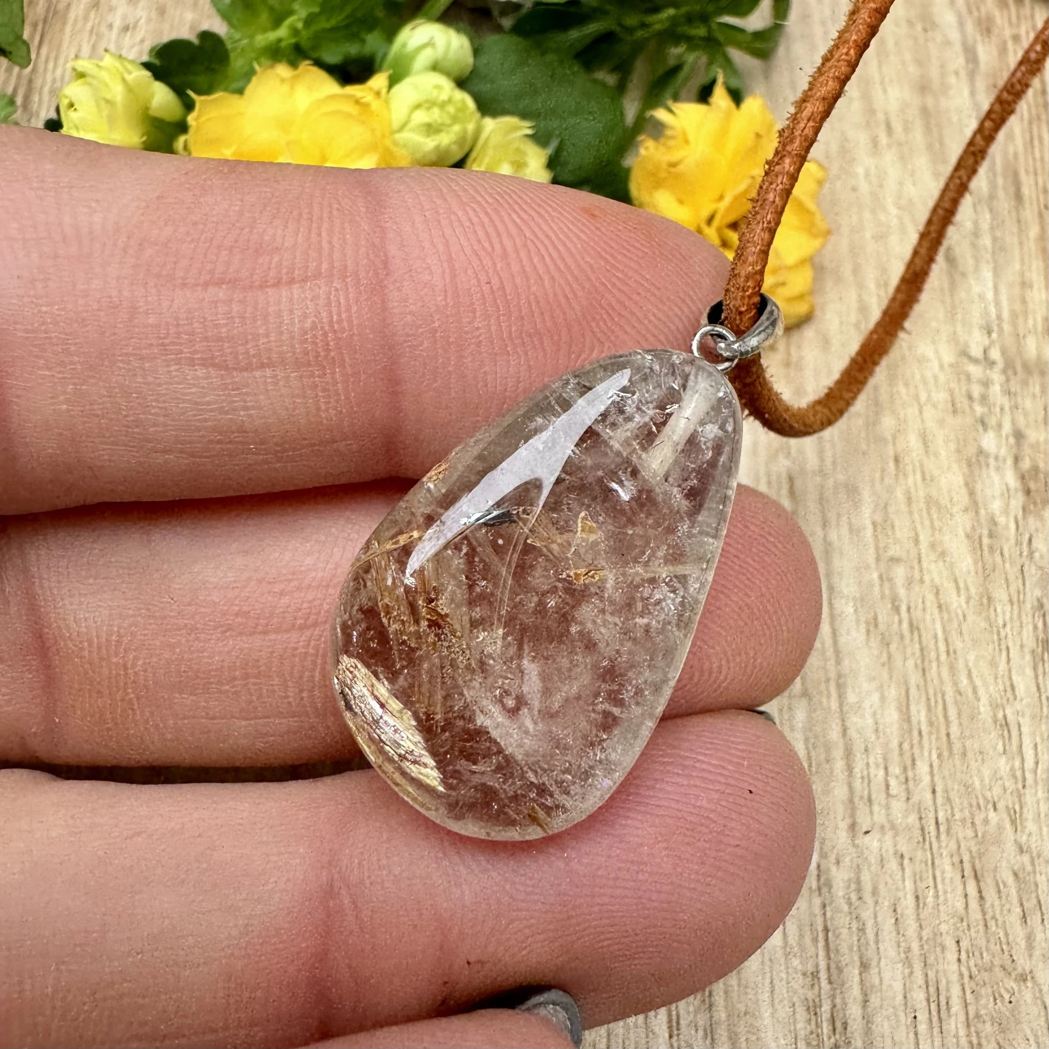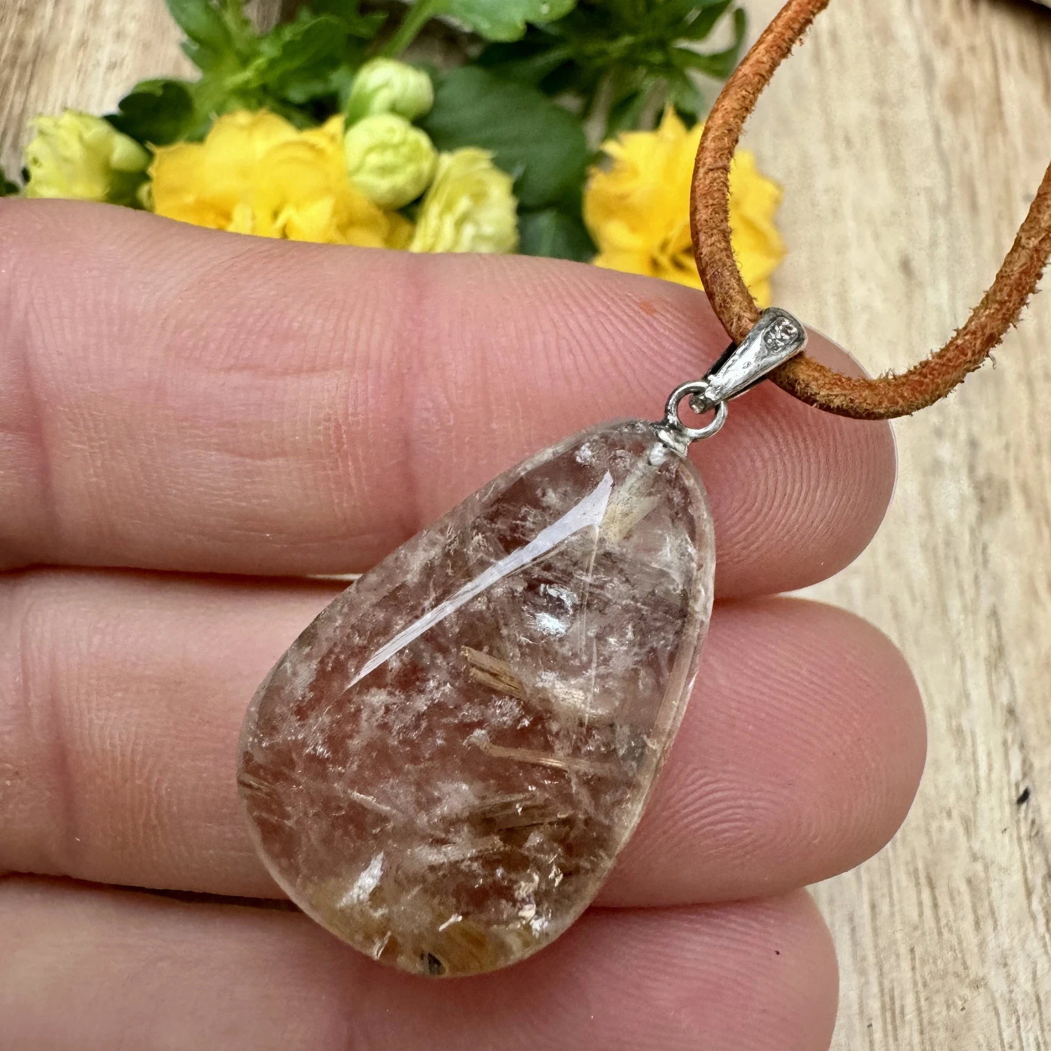 Rutiilkvartsi ripats 925 hõbe aasaga.