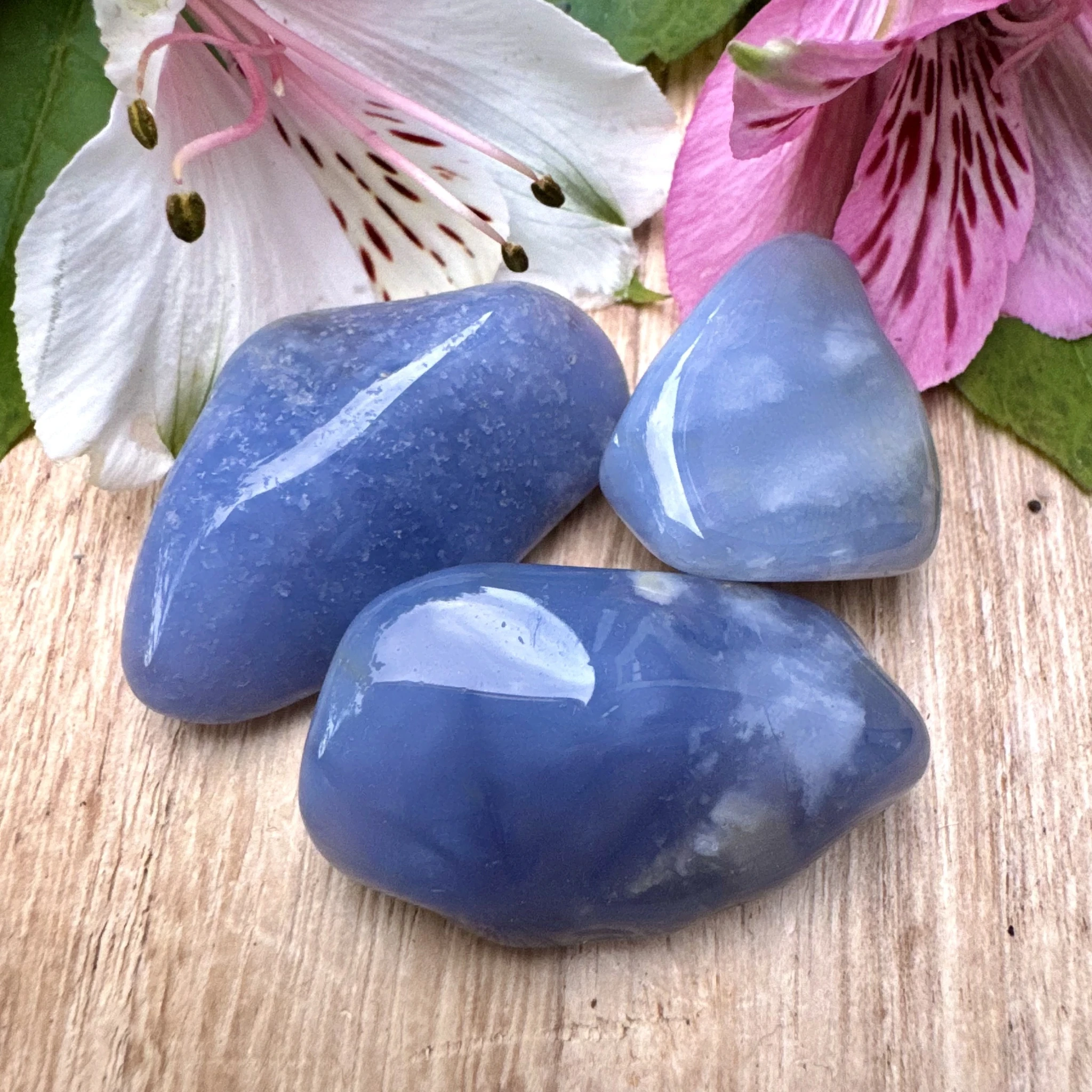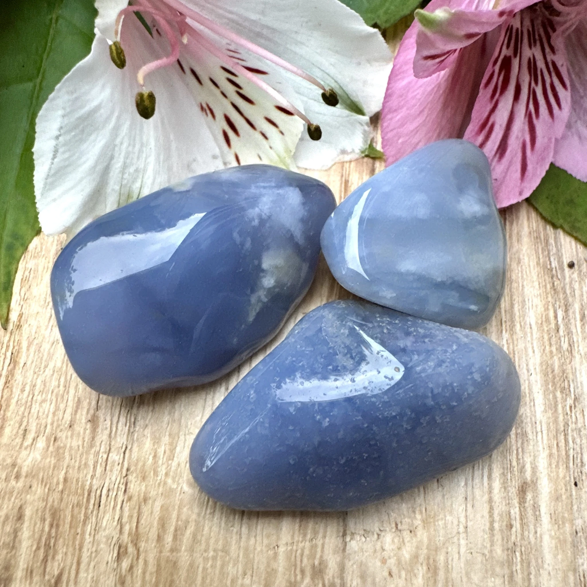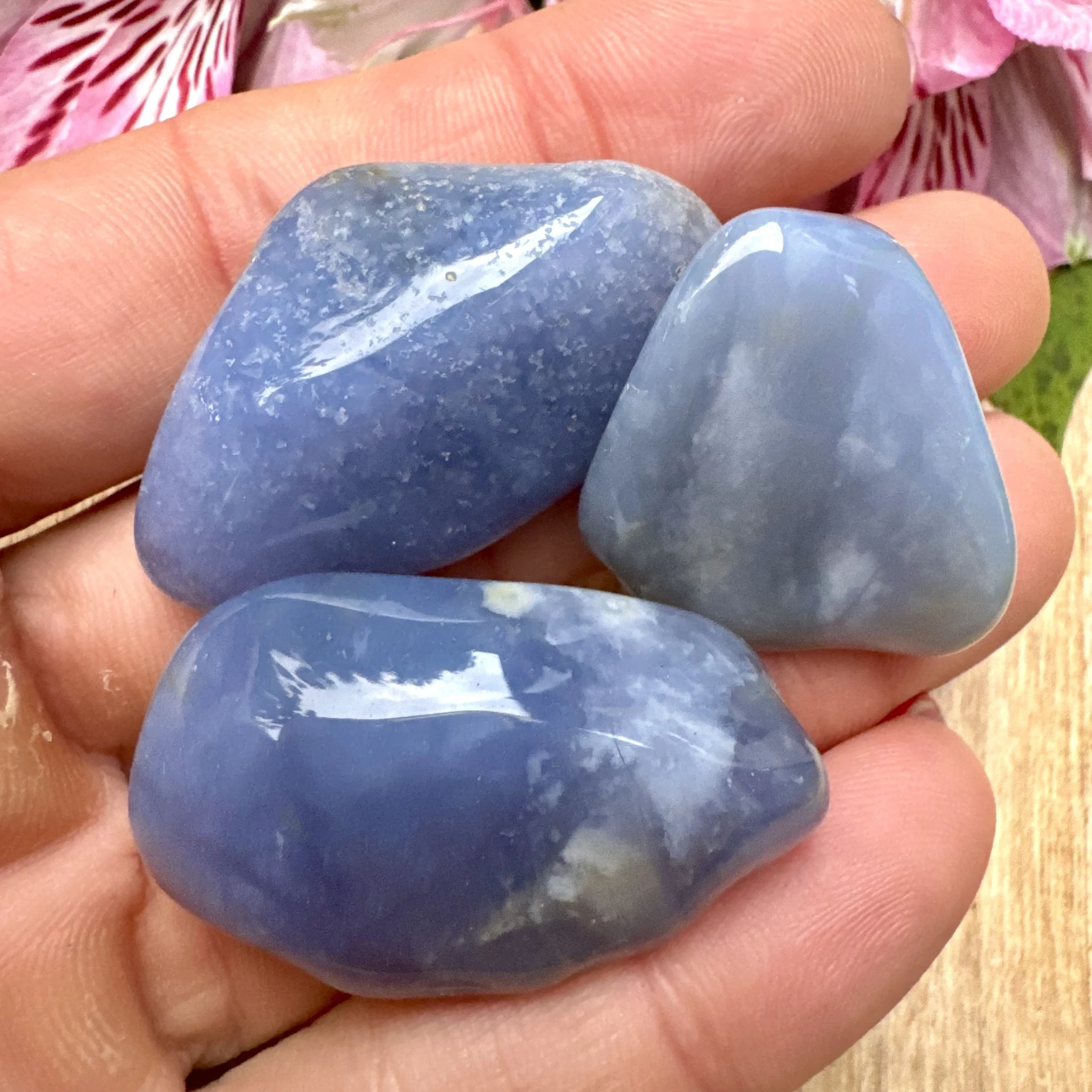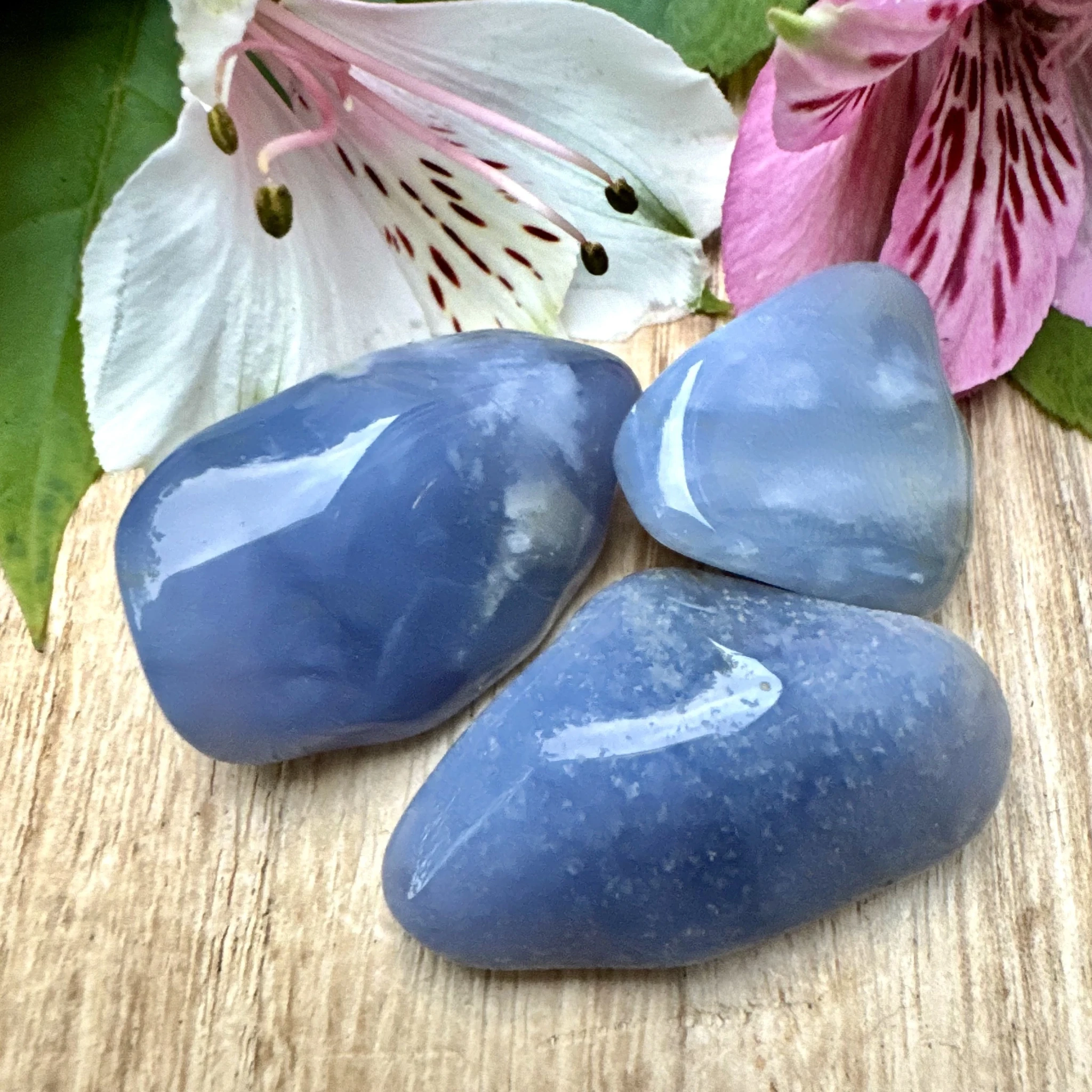 Sinine kaltsedon on rahulik, rahustav ja toetav kaaslane. Ta turgutab loovust, muudab meele paindlikumaks ning toetab oma kandja eneseväljendusoskust. Sinine kaltsedon ongi suurepärane kaaslane juhul, kui soovid õppida uut keelt, parandada oma mälu või plaanid esineda suurema publiku ees. Sinine kaltsedon aitab ka ennast paremini tunnetada ning suurendab sisemist optimismi. Temast on palju abi leina ning kurbuse korral. Samuti on ta hea kaaslane meditatsioonil. Füüsilises kehas on ta eestkätt seotud kõri, silmade ja immuunsüsteemiga.