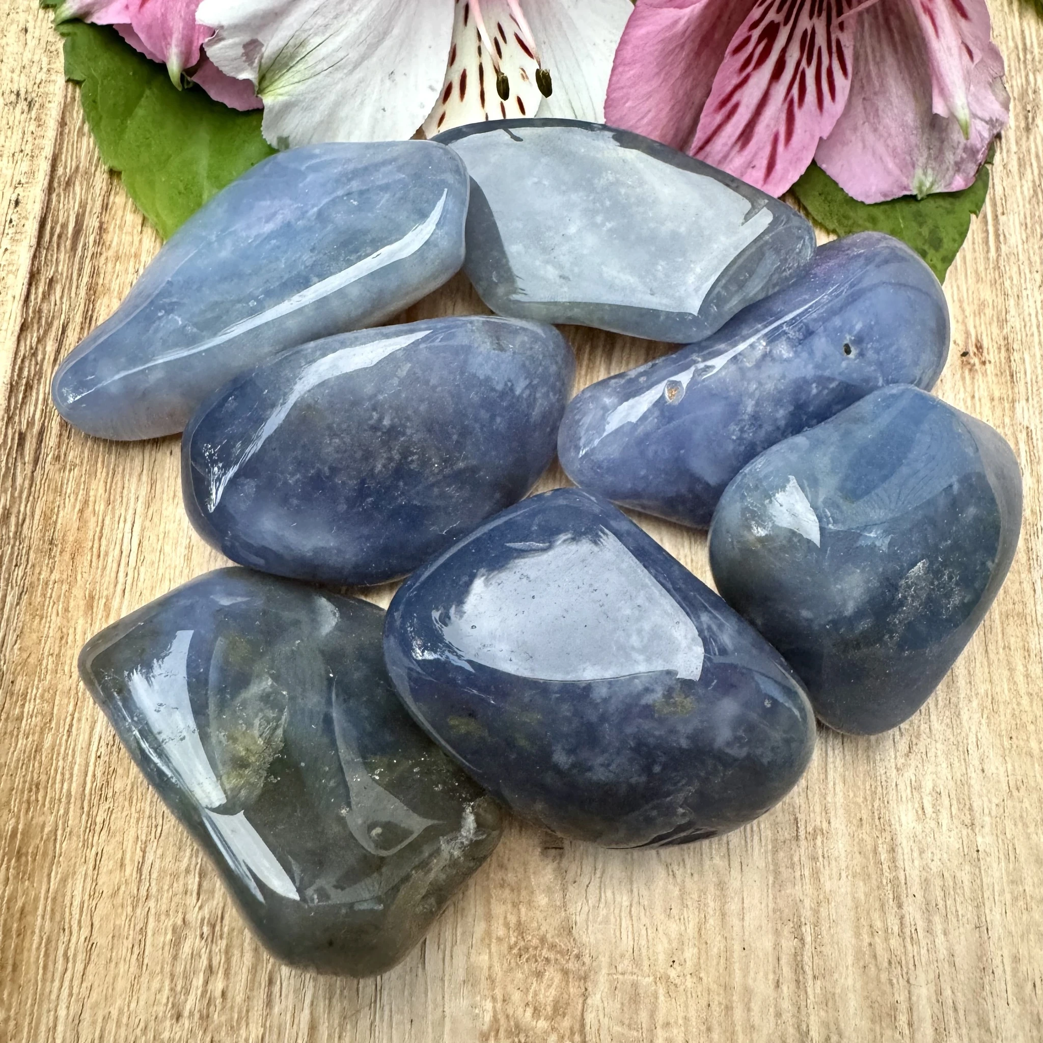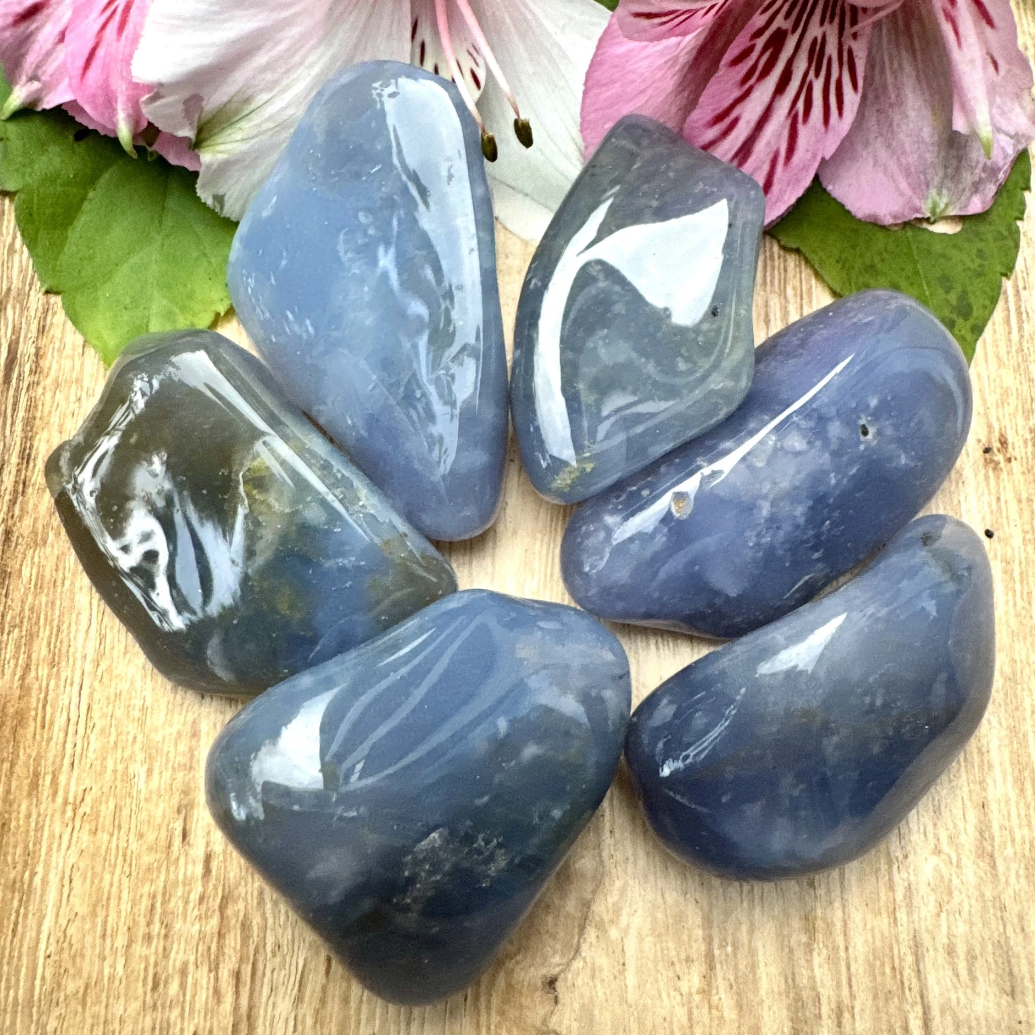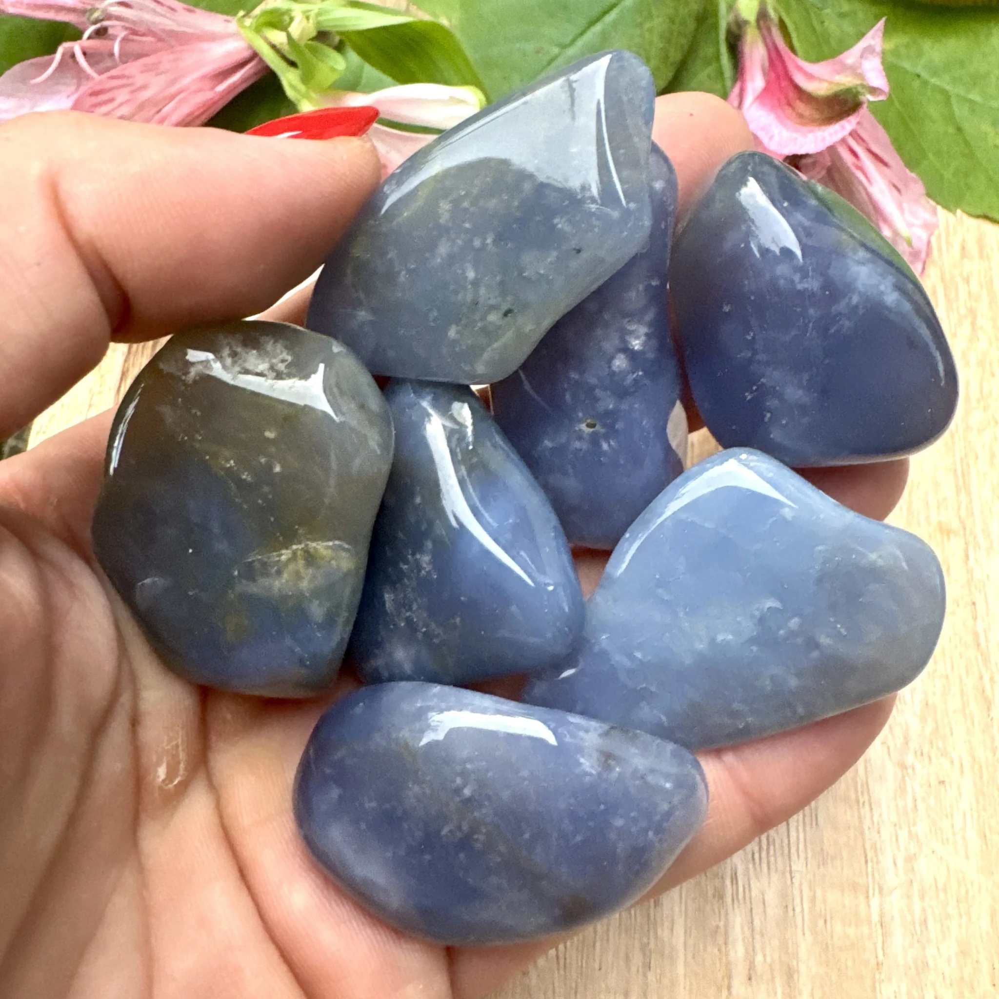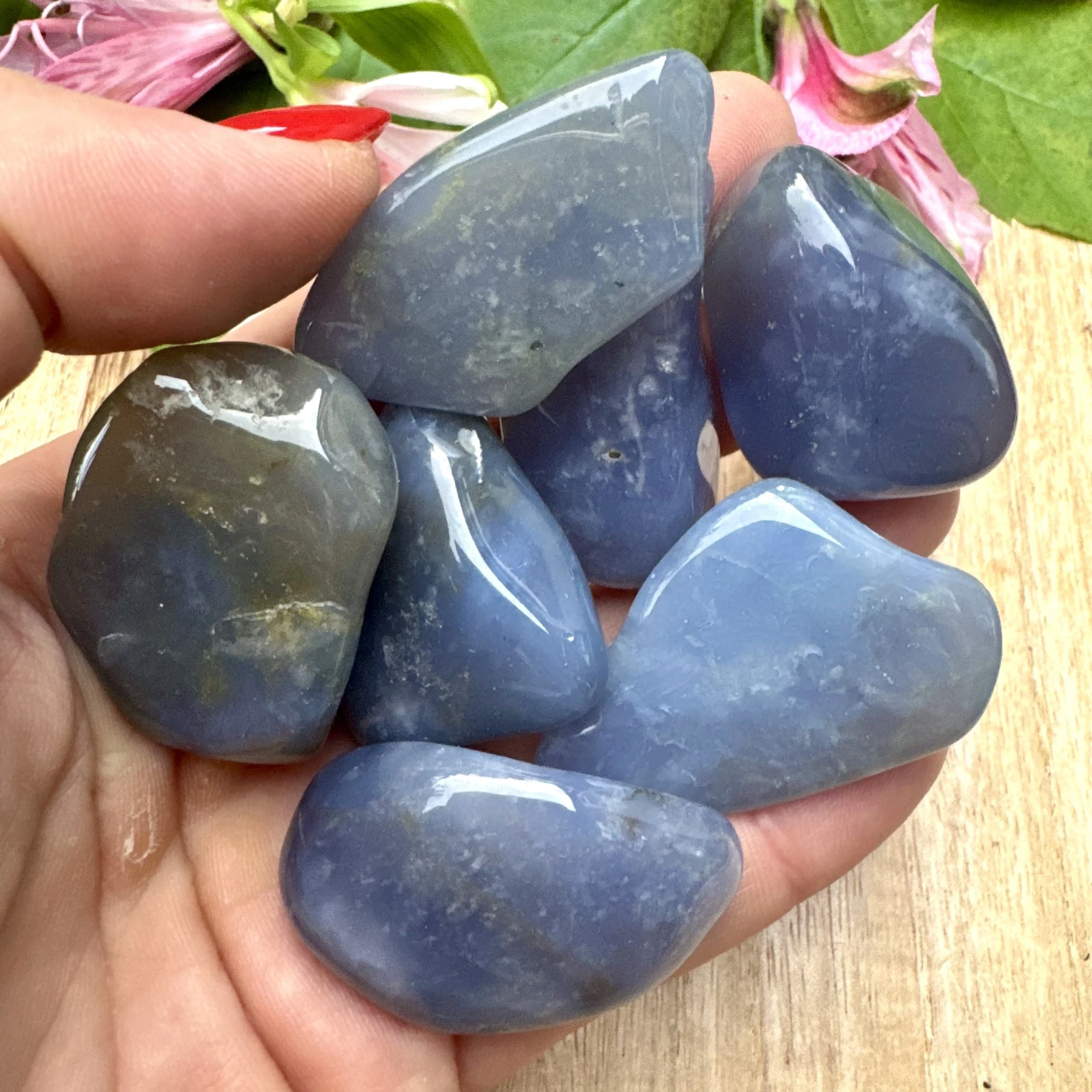 Sinine kaltsedon on rahulik, rahustav ja toetav kaaslane. Ta turgutab loovust, muudab meele paindlikumaks ning toetab oma kandja eneseväljendusoskust. Sinine kaltsedon ongi suurepärane kaaslane juhul, kui soovid õppida uut keelt, parandada oma mälu või plaanid esineda suurema publiku ees. Sinine kaltsedon aitab ka ennast paremini tunnetada ning suurendab sisemist optimismi. Temast on palju abi leina ning kurbuse korral. Samuti on ta hea kaaslane meditatsioonil. Füüsilises kehas on ta eestkätt seotud kõri, silmade ja immuunsüsteemiga.
