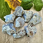 Sinine pitsahhaat on leebe kristall. Ta leevendab kandja õlul olevat koormat, aitab jagu saada hirmudest ja foobiatest, soodustab kommunikatsiooni ning vihast lahti laskmist. Sinine pitsahhaat inspireerib, rahustab, leevendab stressi ja soodustab armulikkust enda ja teiste suhtes.
