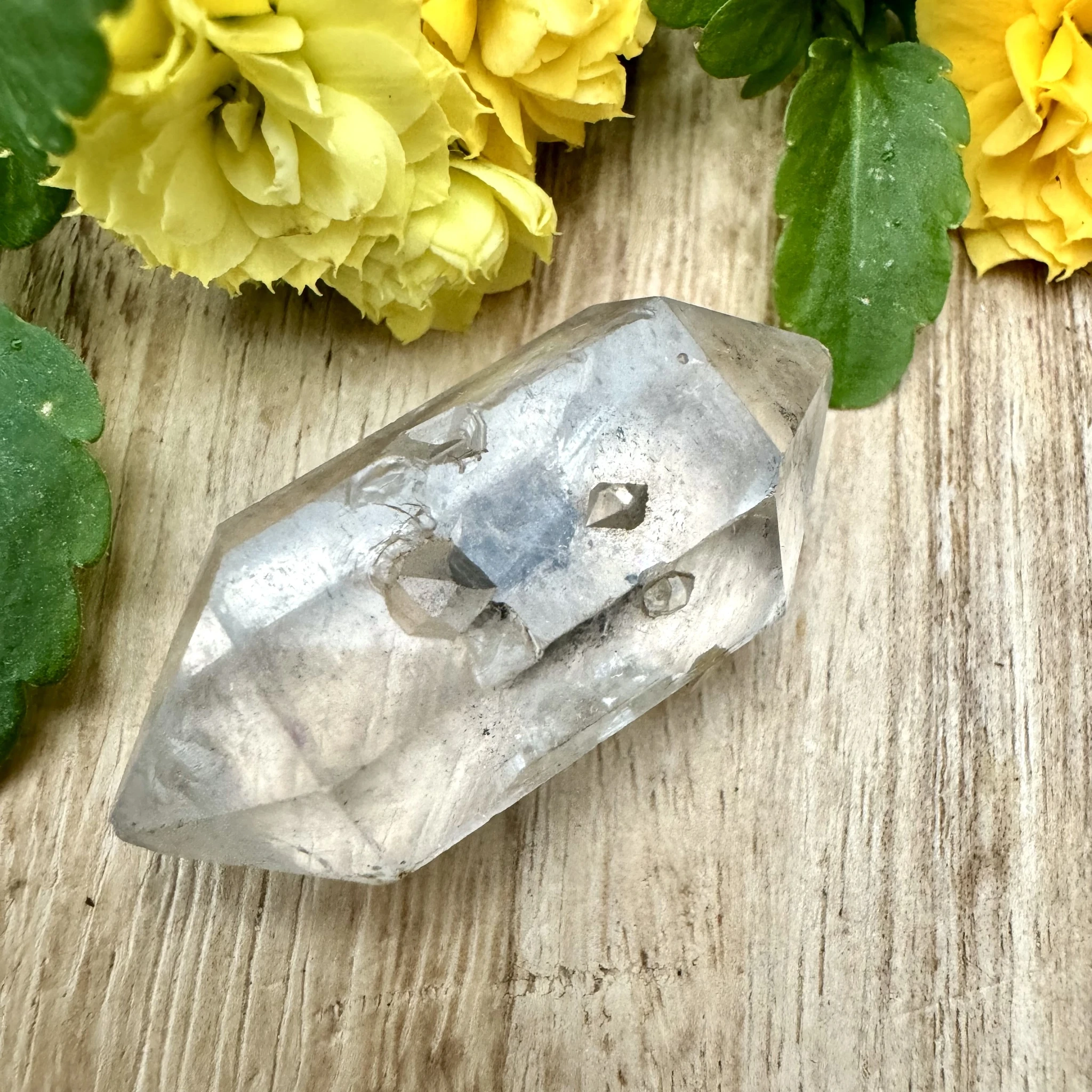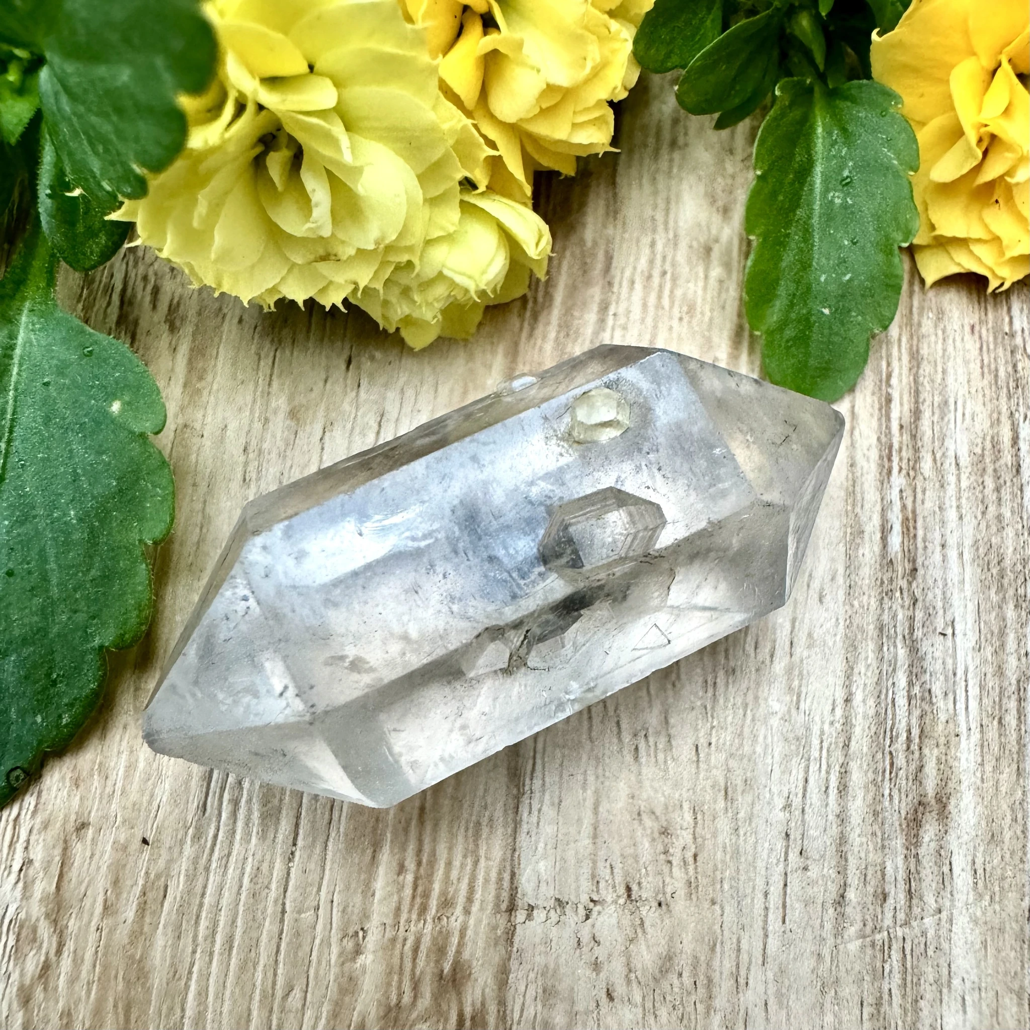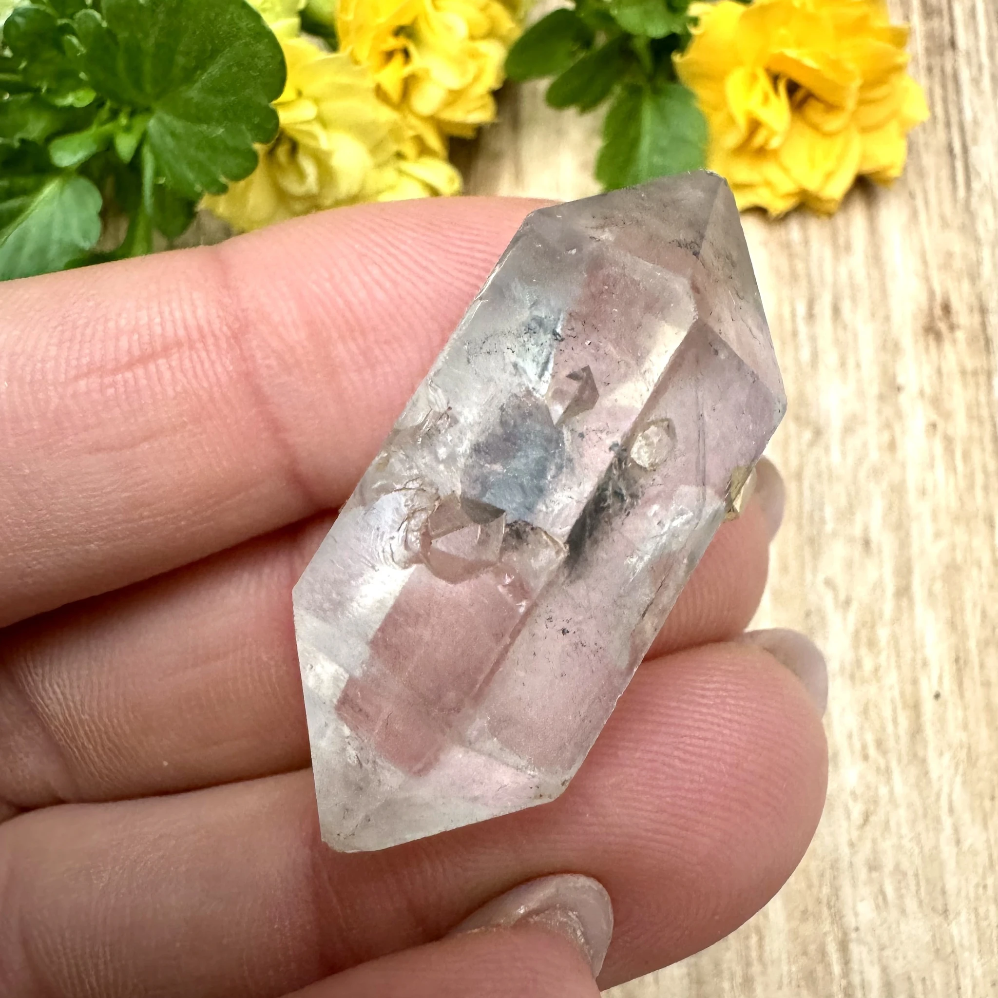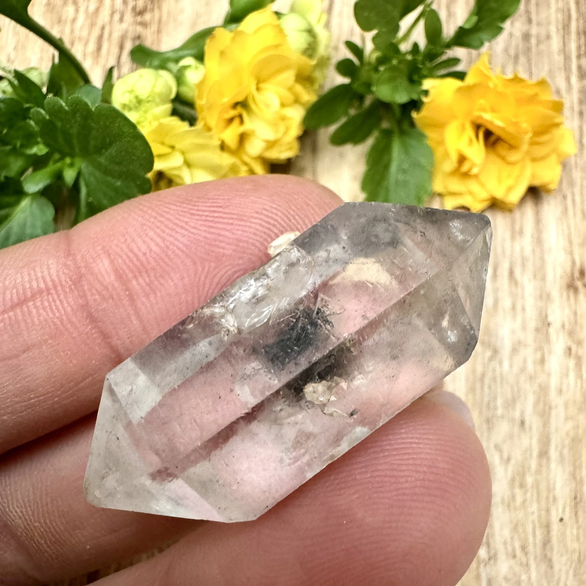 Turmaliinkvartsi kahe tipuga looduslikult murtud varras.