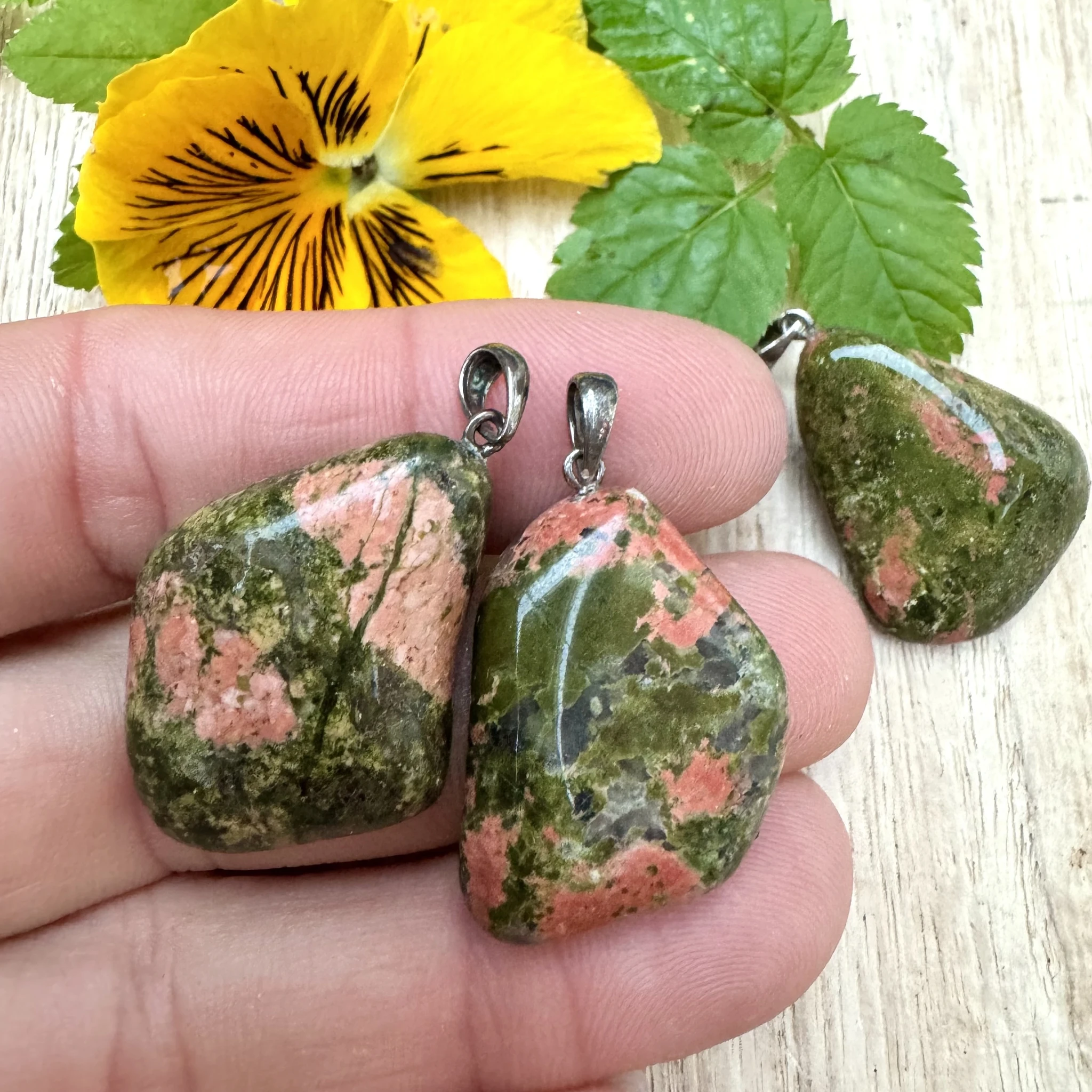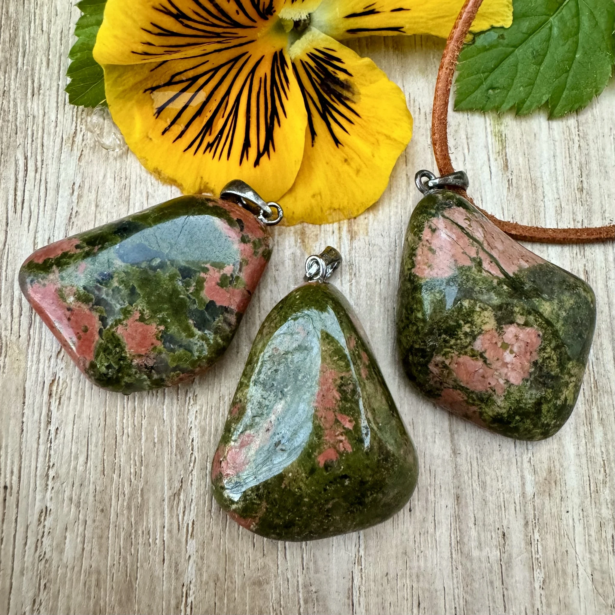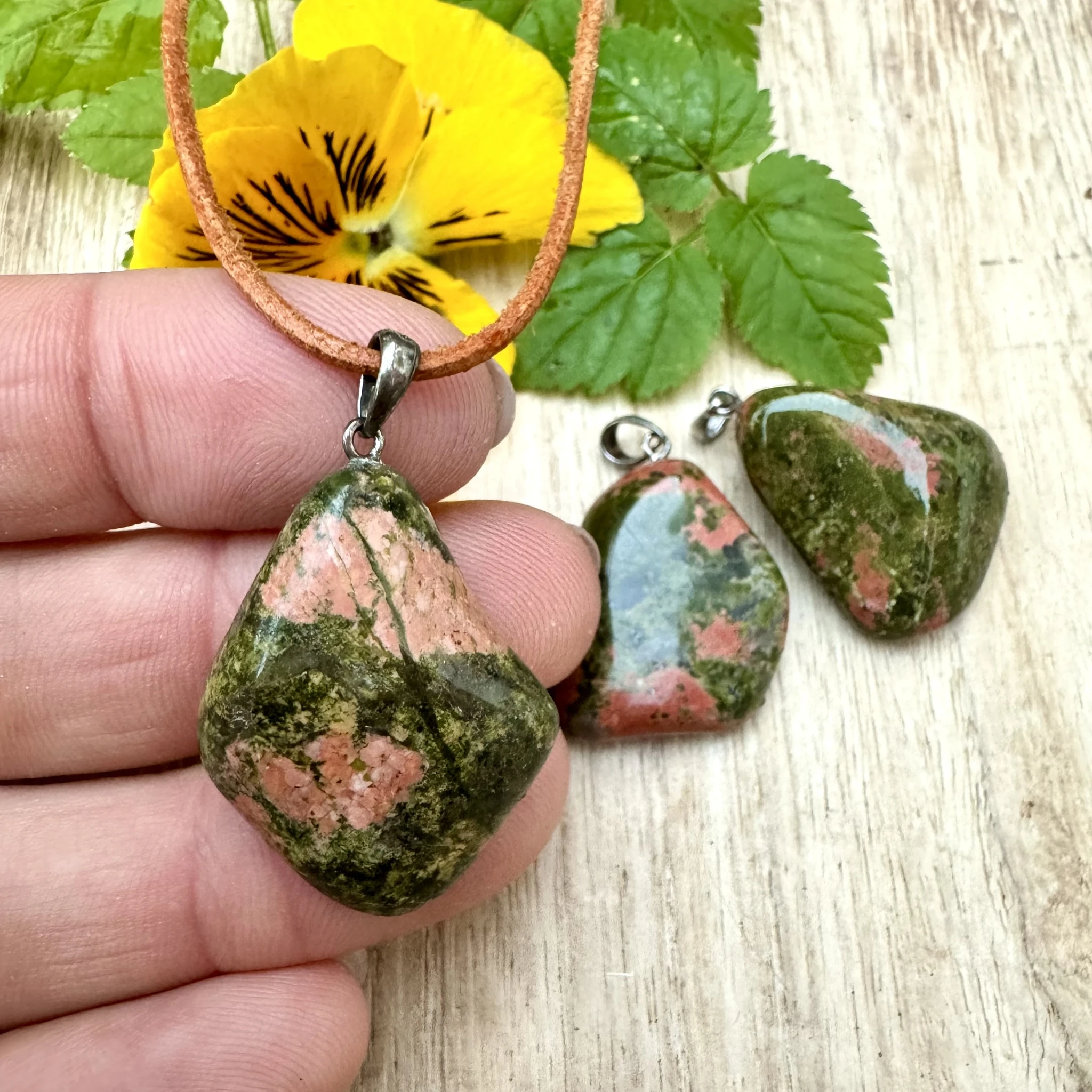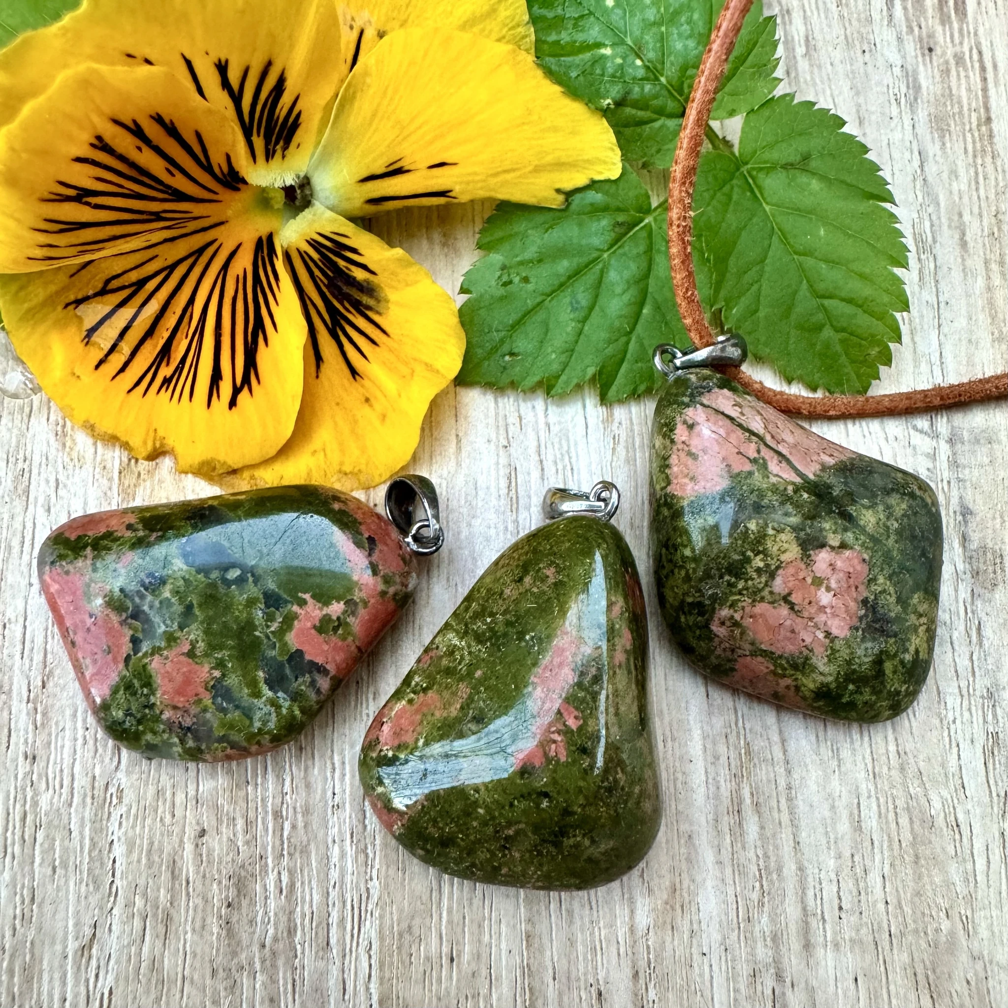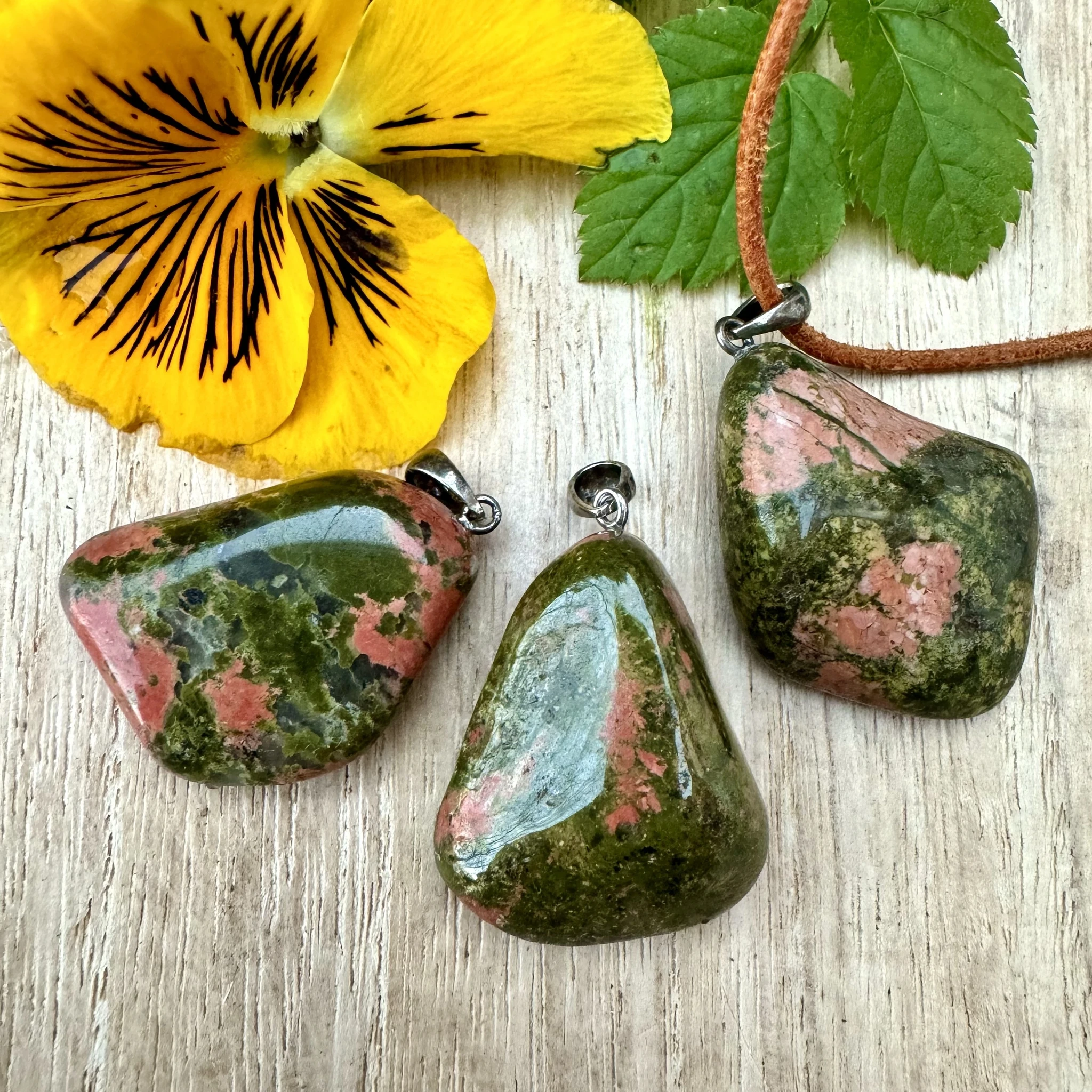 Lihvitud unakiidiga ripats 925 hõbedast aasaga.